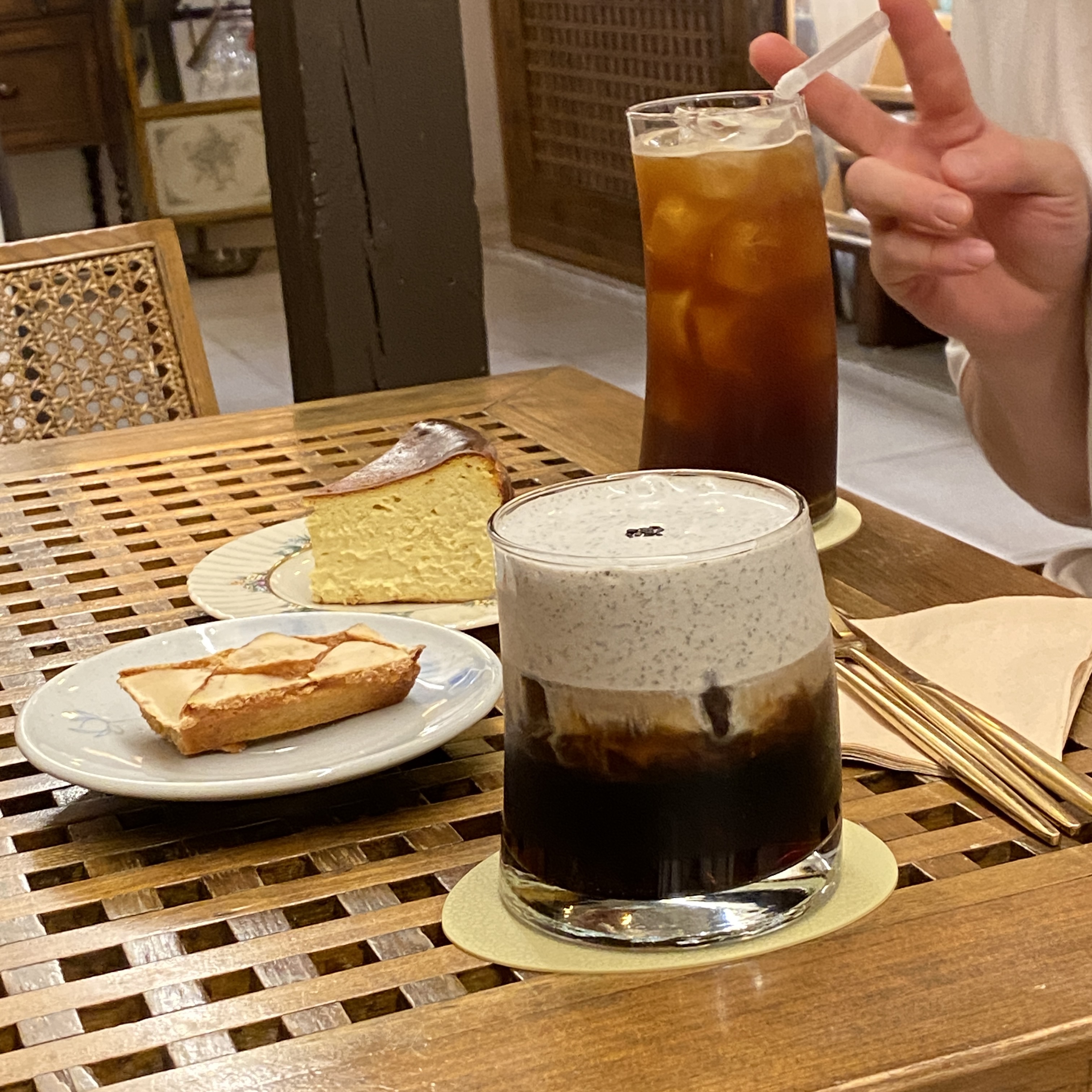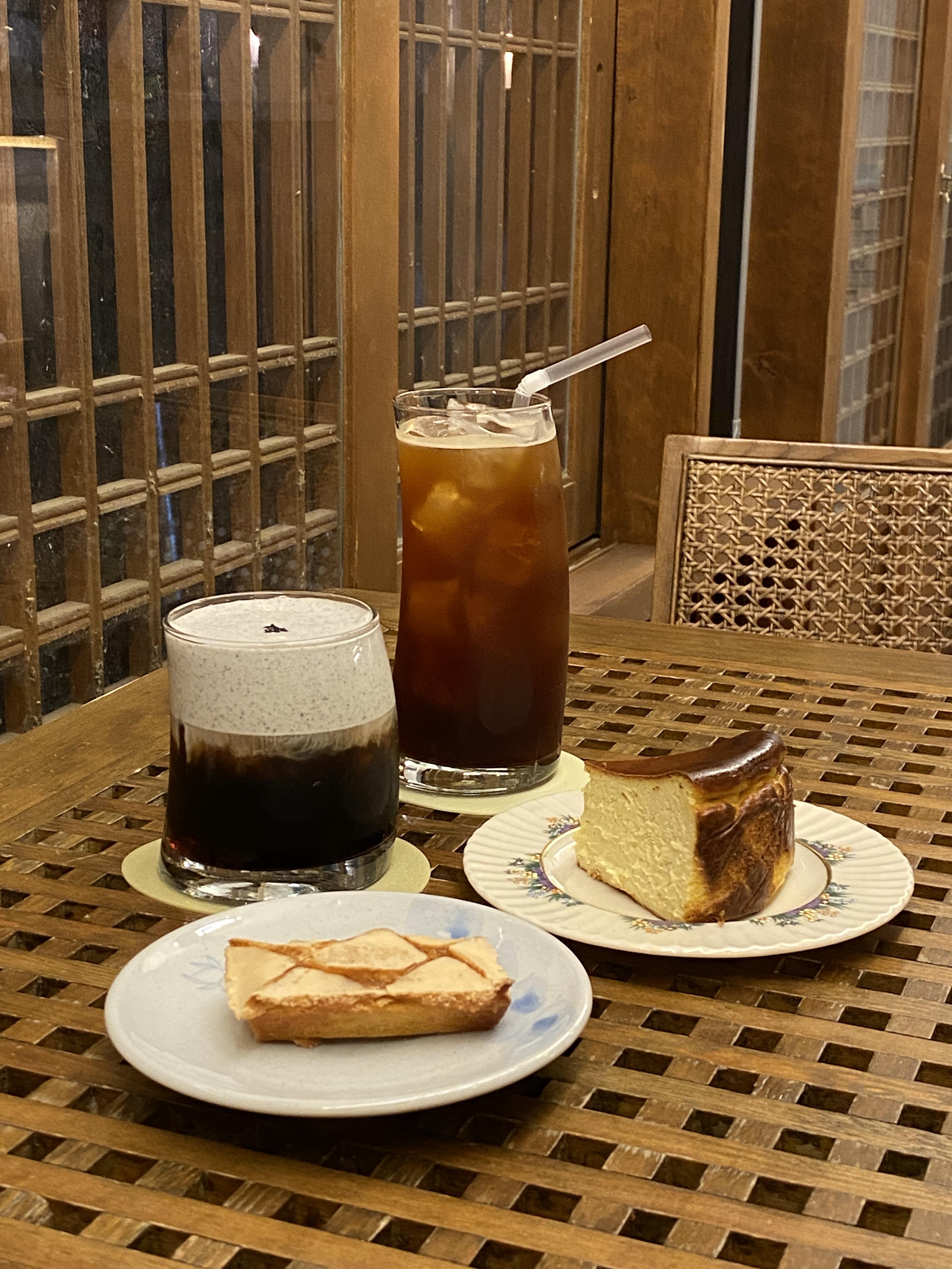 아메리카노 + 흑임자 아인슈페너 + 바스크 치즈케익 + 누네띠네 휘낭시에