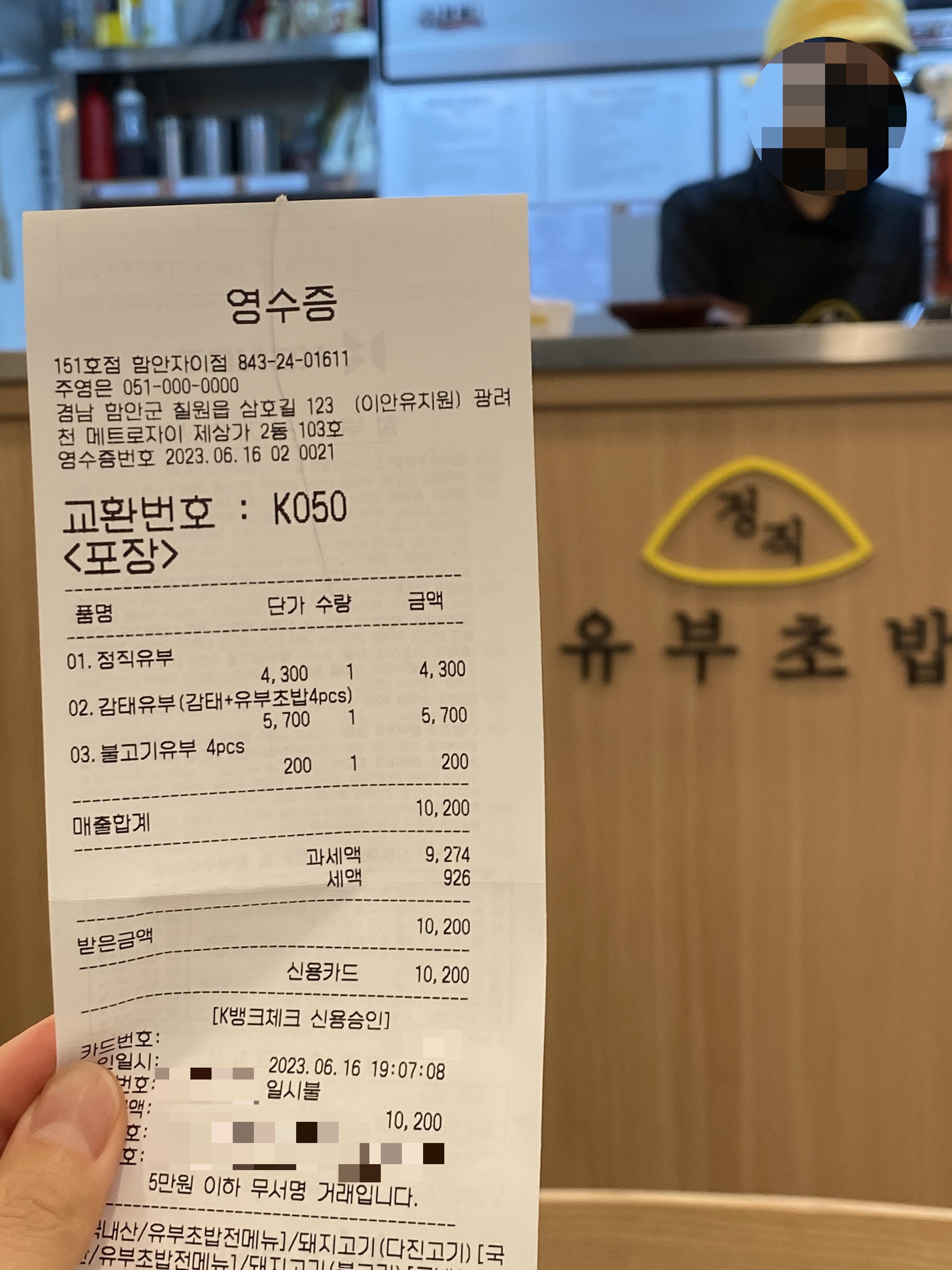 '정직유부' 포장 추천 메뉴!! 내돈내산 후기 (함안자이점)였습니다.