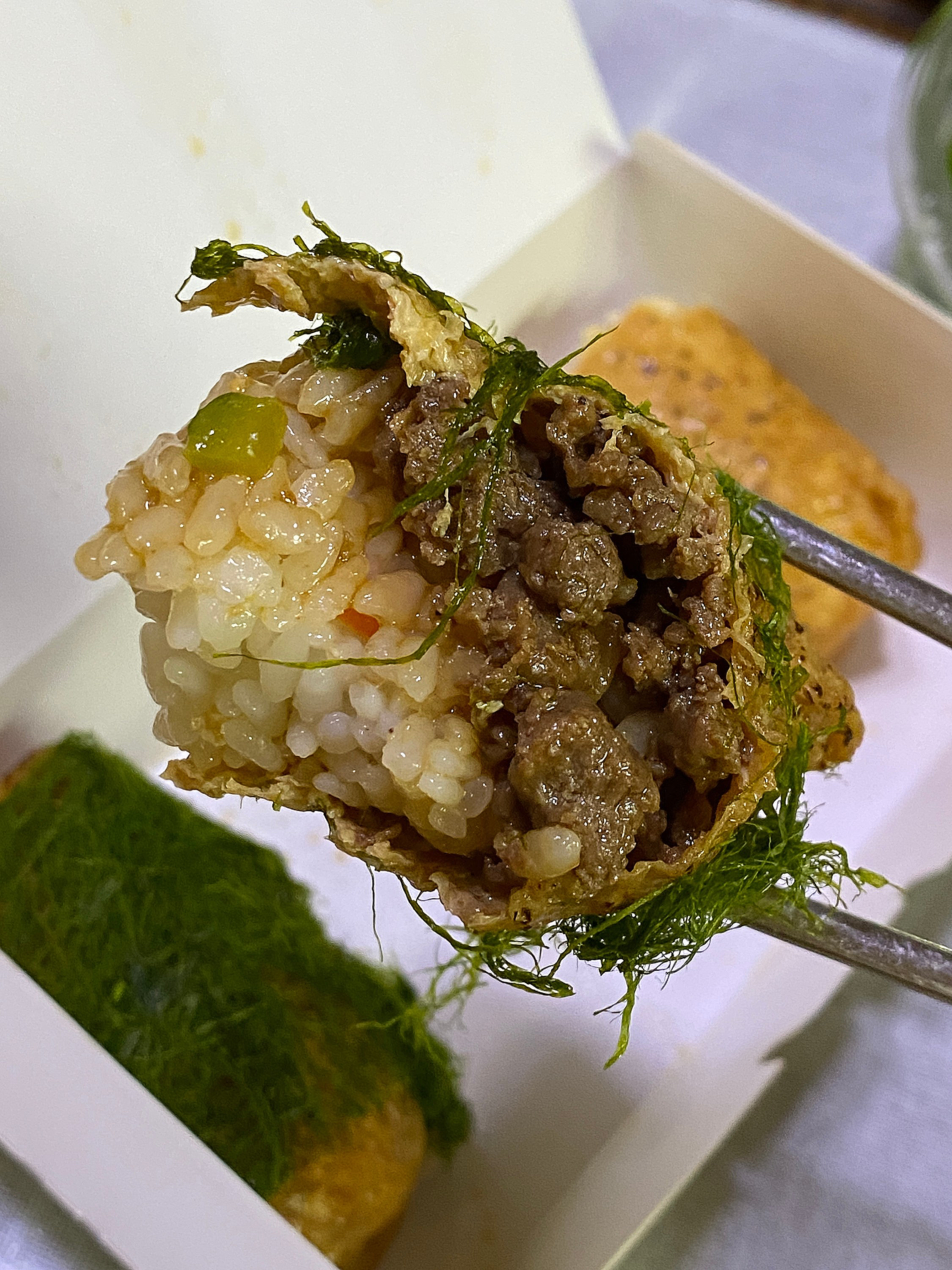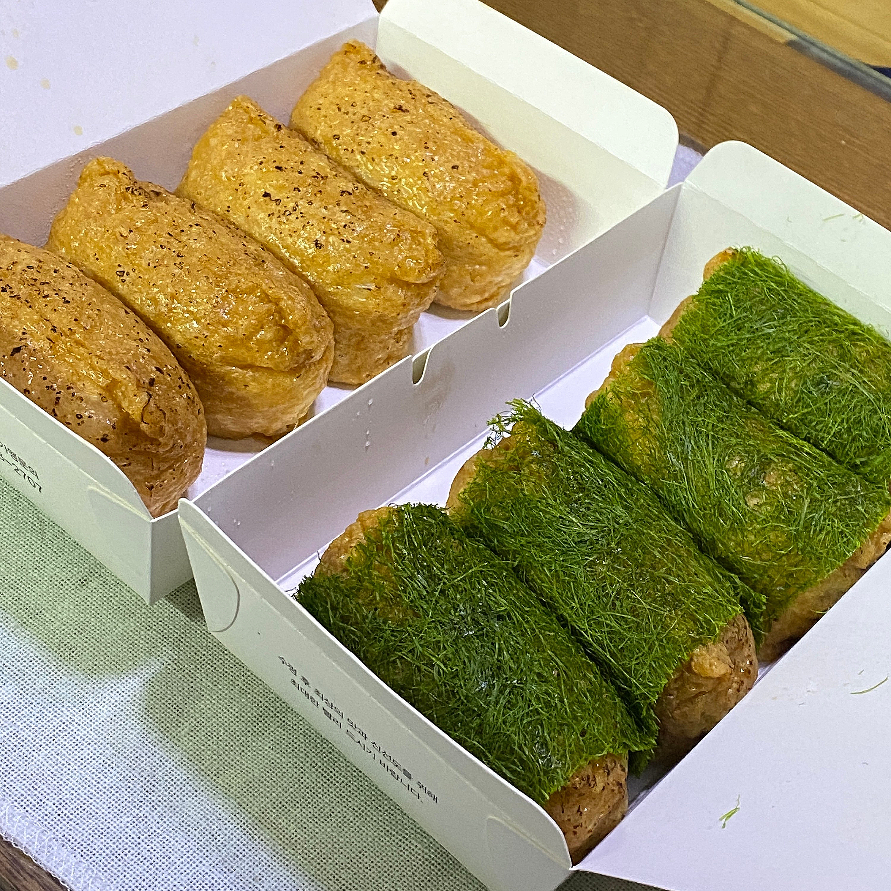 그리고 기본 유부초밥은 토치로 겉을 한 번 구워주셨습니다.
