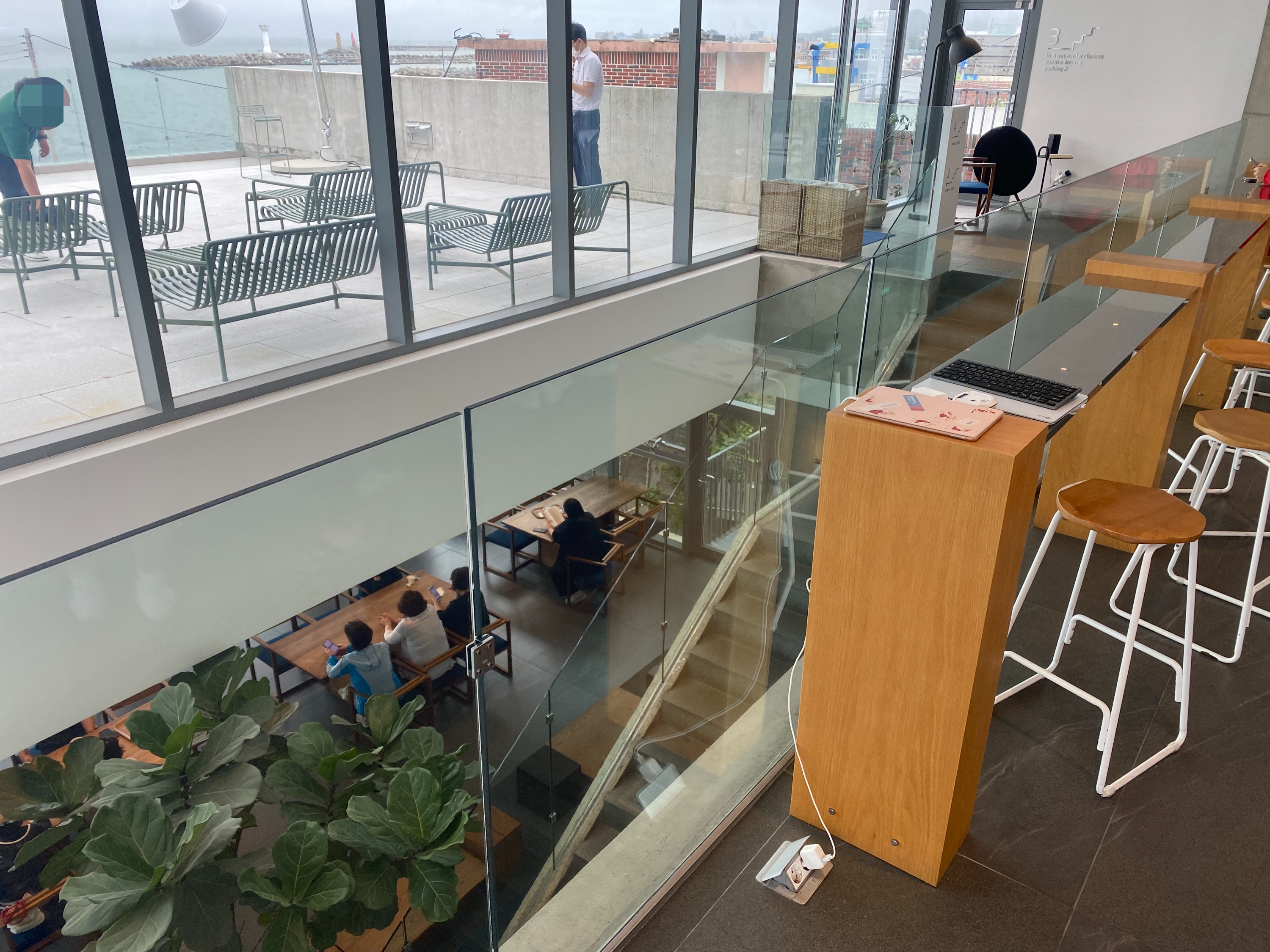 루프탑 겸 테라스에서 앉아 커피와 바다를 동시에 즐길 수 있어요.