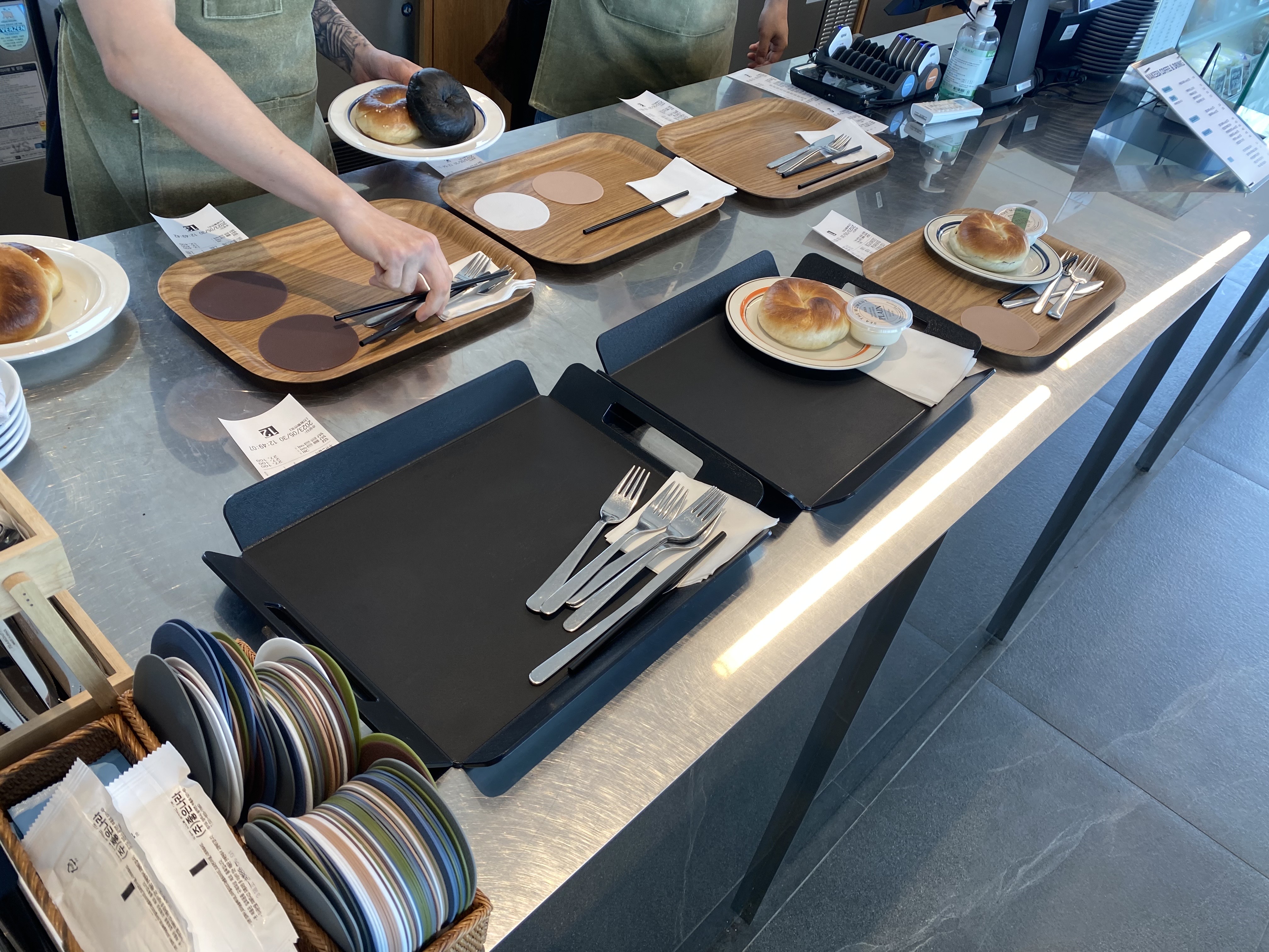 음료 및 베이글 준비 중이네요. 쟁반이 많이 놓여있는 걸로만 봐서도 손님이 많다는 걸 아시겠지요?!
