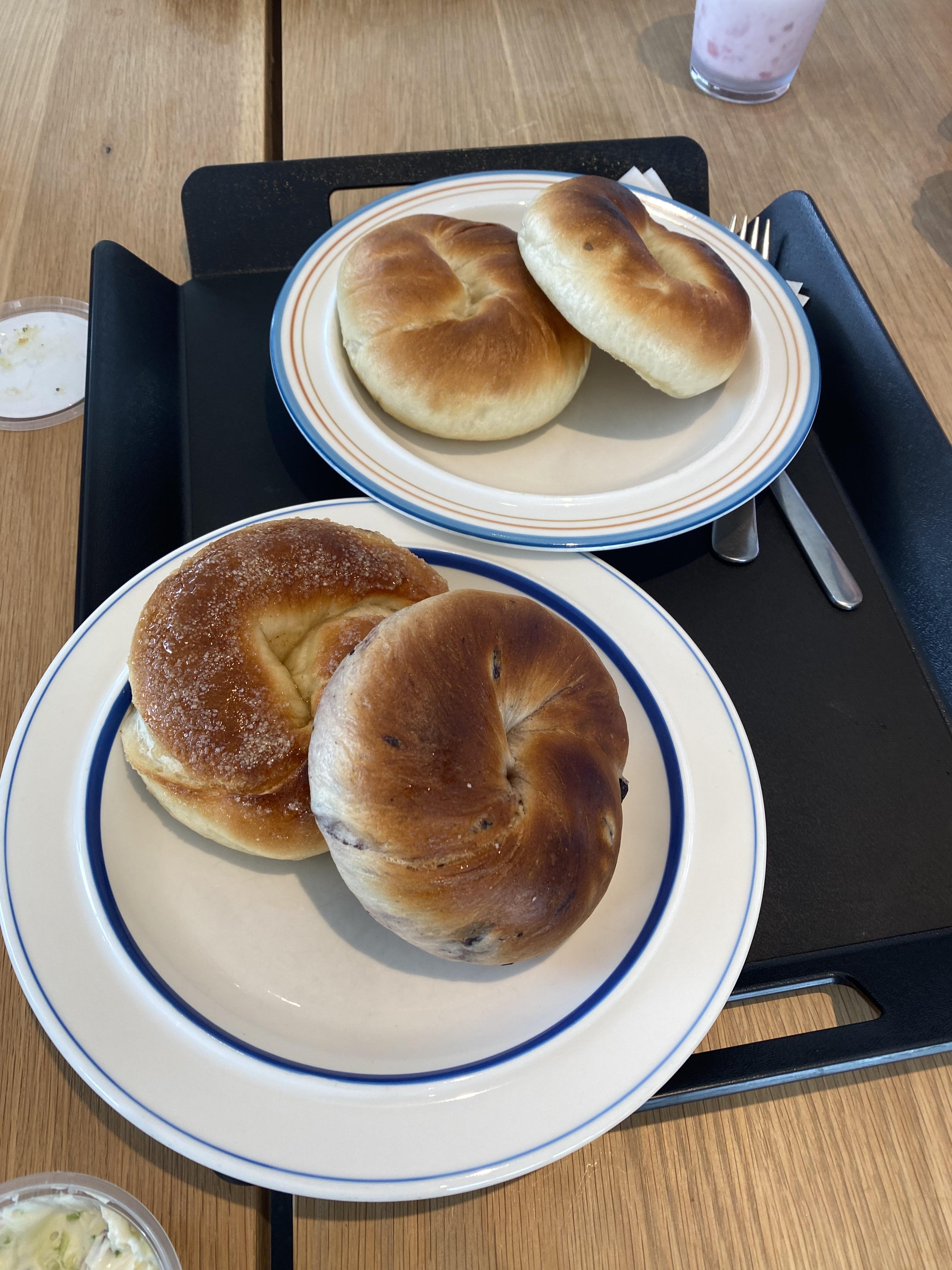 아무래도 5명이서 나눠먹으니 베이글도 맛있고 양이 너무 적어서 결국 추가로 더 주문했습니다. 플레인 베이글 2개와 시나몬피칸, 블루베리를 추가 주문했어요.