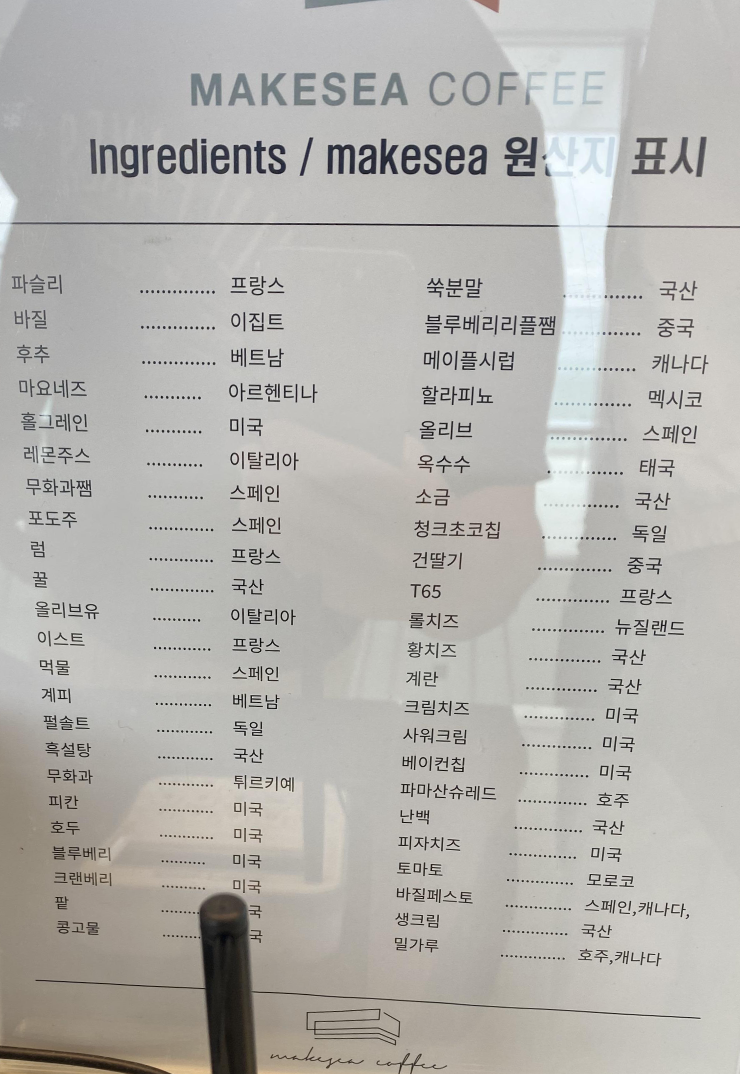 메이크씨는 원산지 표시도 메뉴 옆에 같이 하고 있었어요. 이런 사소한 안내들이 손님들로 하여금 작지만 큰 차이를 느끼게 하는 거 같습니다.