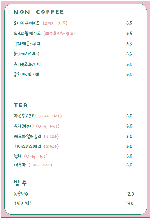 non 커피로 나누어져있어요.