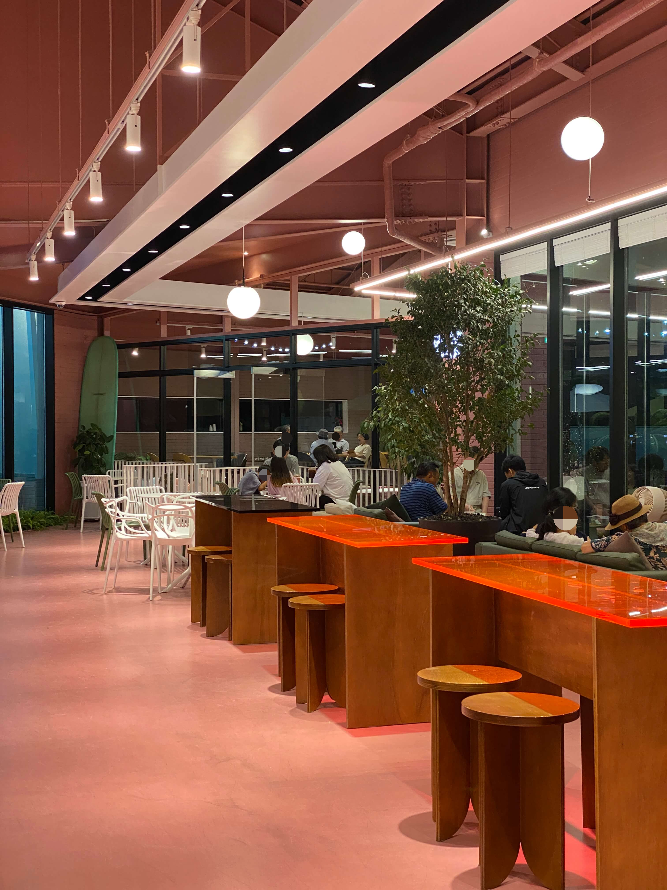 중앙으로 길게 테이블들이 쭉 구성되어있어요.