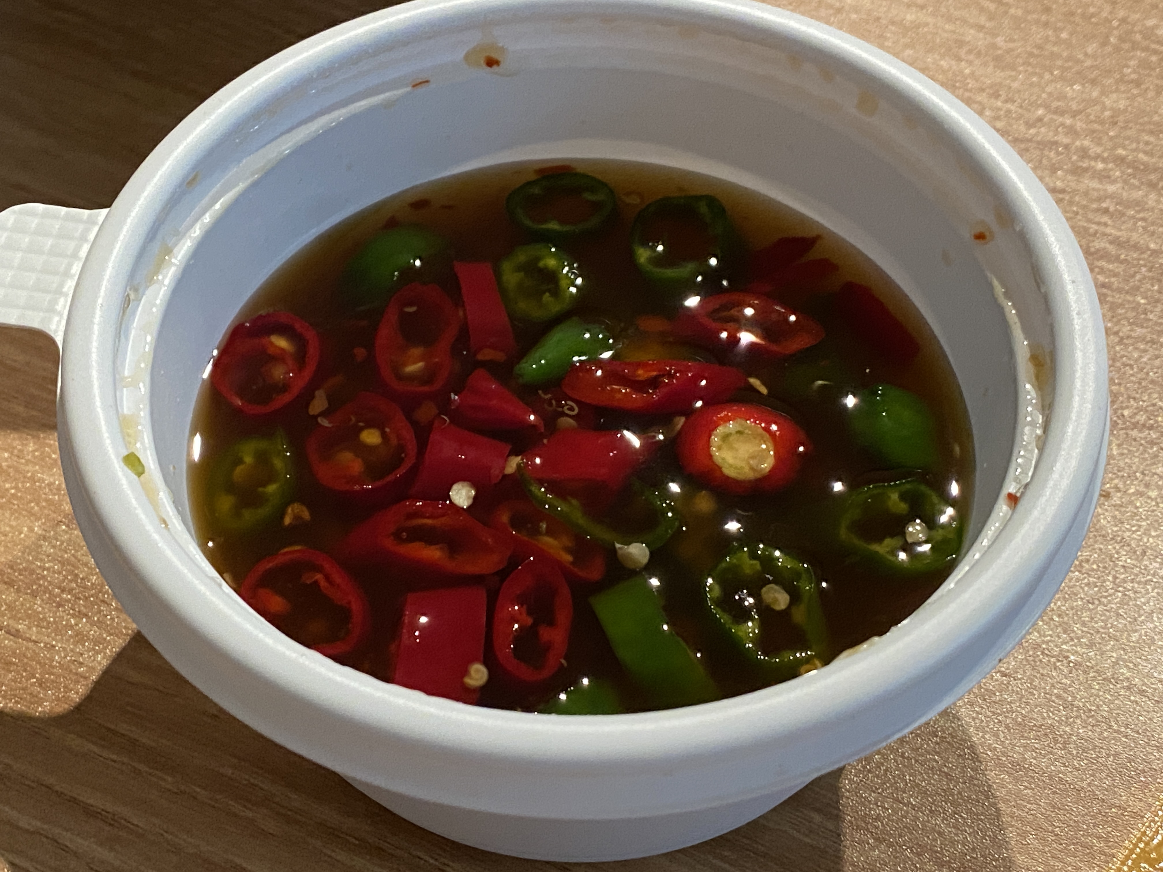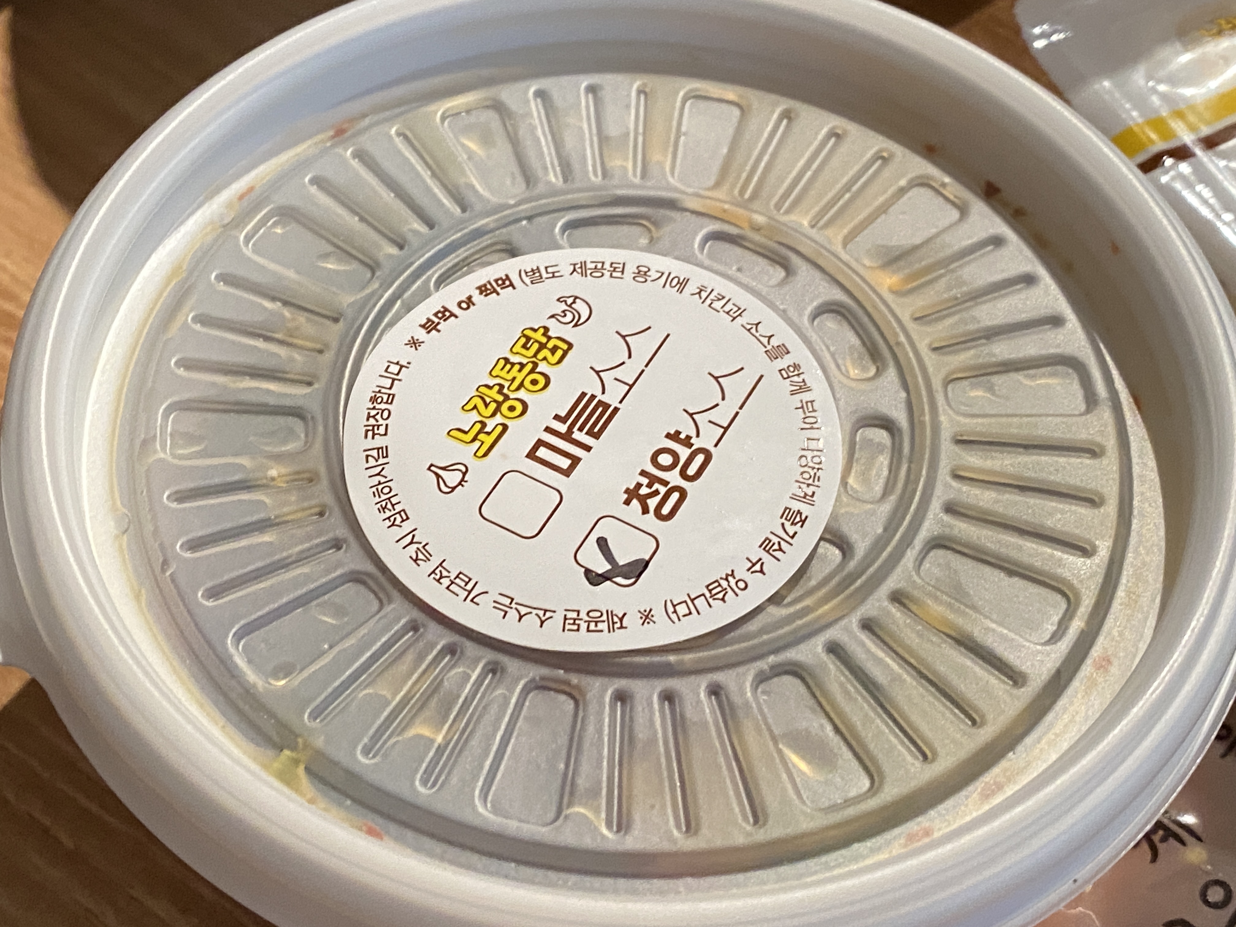노랑통닭의 청양소스입니다. 소스를 살짝 먹어봤는데 약간 피쉬소스가 떠오르는 맛에 청양 고추의 매콤함이 추가된 맛이었습니다. 피시 소스 맛이 나서 치킨과 어울릴까 궁금하고 의아했지만 시간이 갈수록 입에서 감칠맛이 돌아 그 조합이 꽤나 궁금해졌습니다.