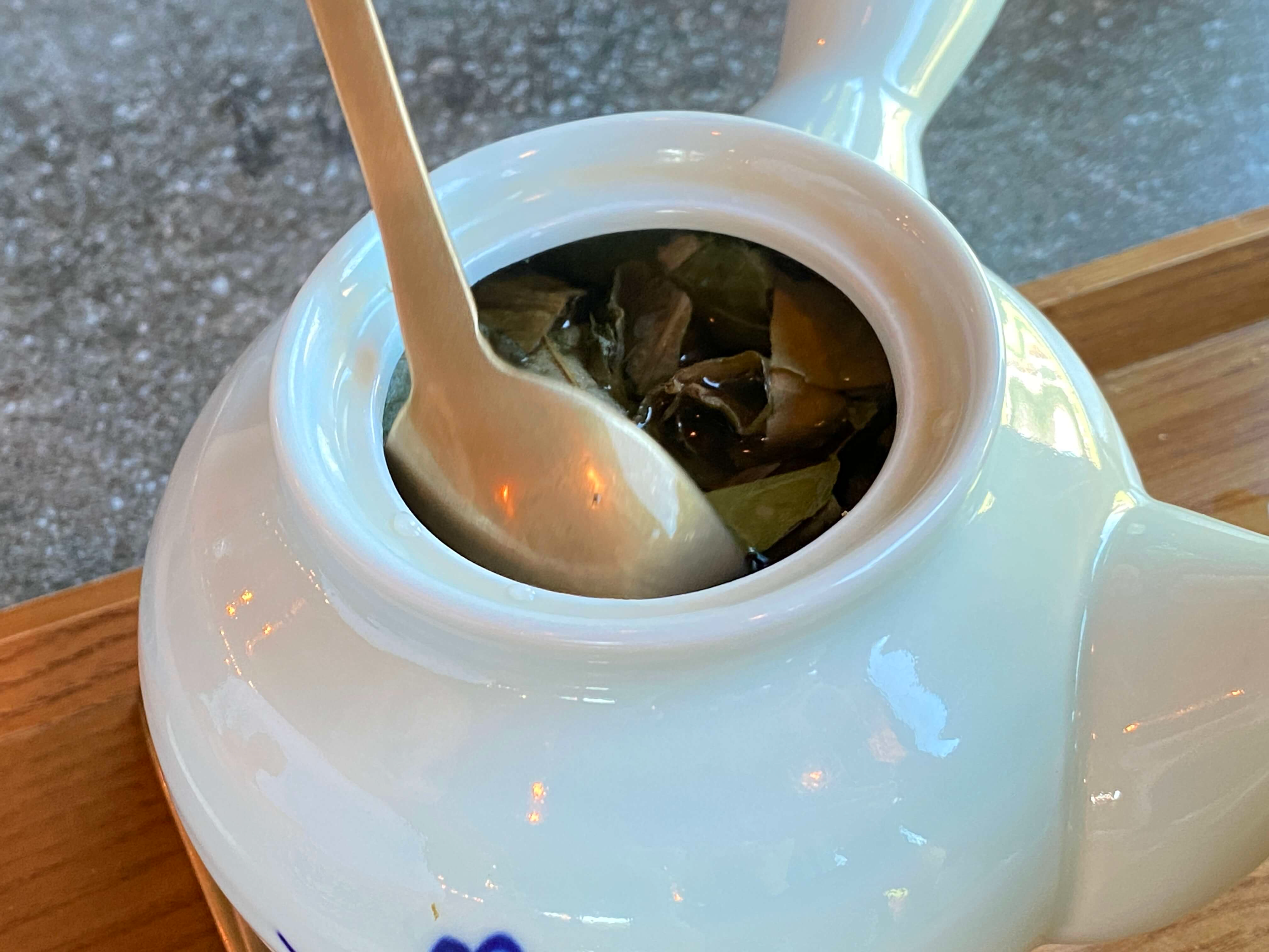연잎차는 사진처럼 도자기 주전자에 담겨 나옵니다. 생 연잎이 들어간 건 아니고 살짝 말려진 잎사귀들 같기도 했어요,