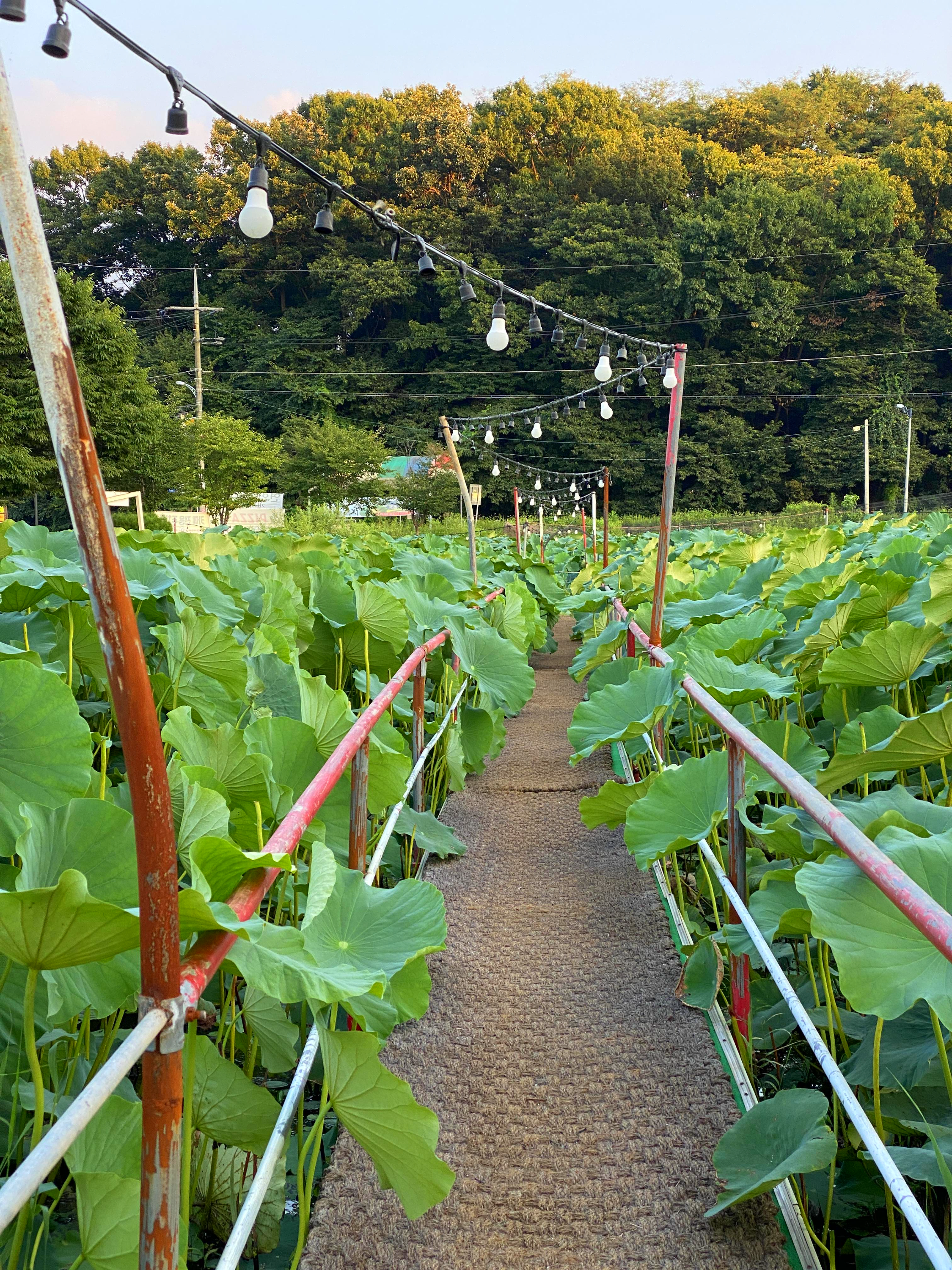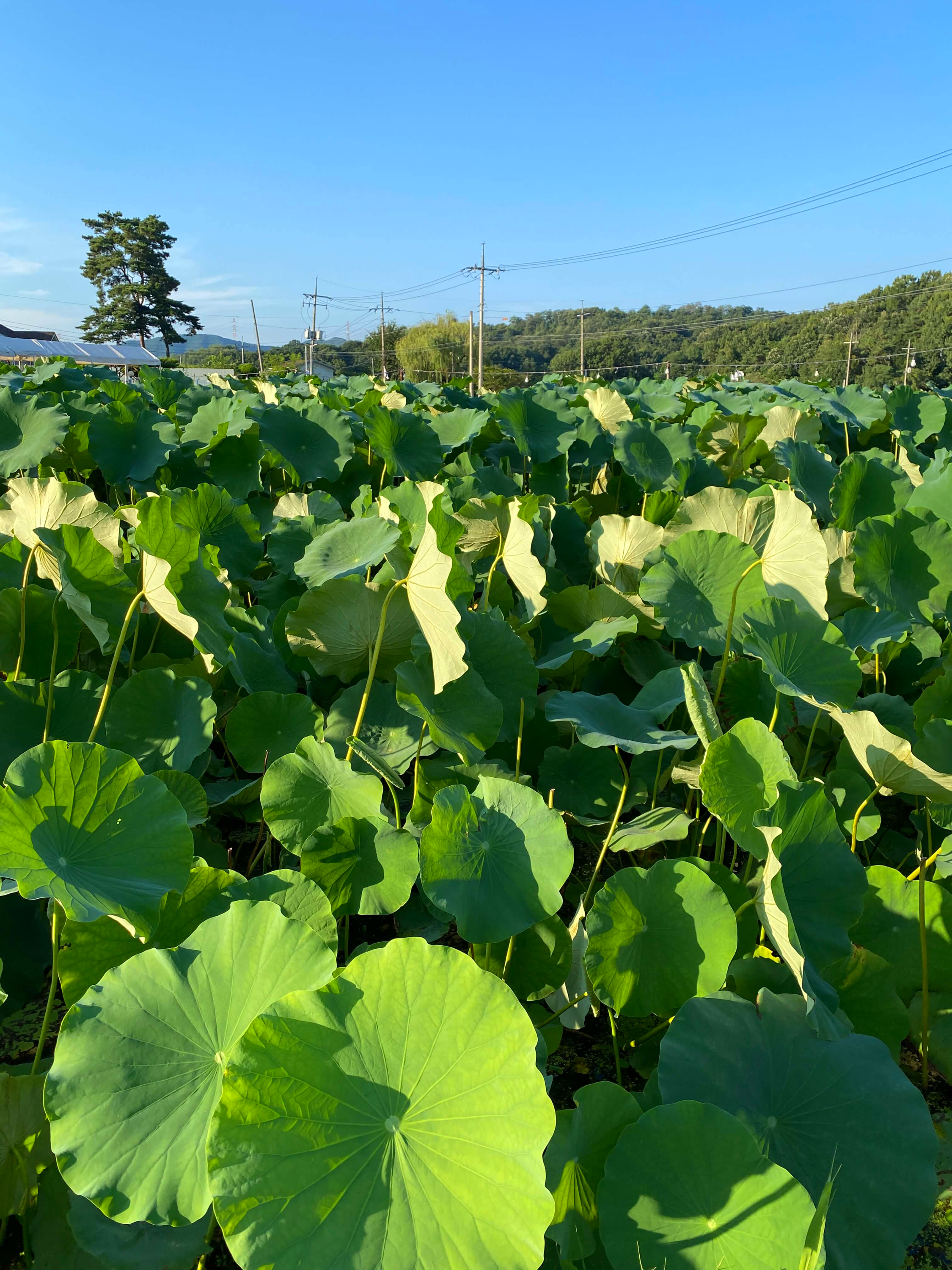 햇빛 받는 연잎들이 정말 싱그러워보입니다. 실제로 보면 기본적으로 모든 연잎들이 사람 얼굴보다도 큰 사이즈들이에요. 그런데 하나하나 모두 엄청 싱싱해요. 비 오는 날 연잎들 위로 뒹구는 물방울들 보는 재미도 쏠쏠할 거 같아요.