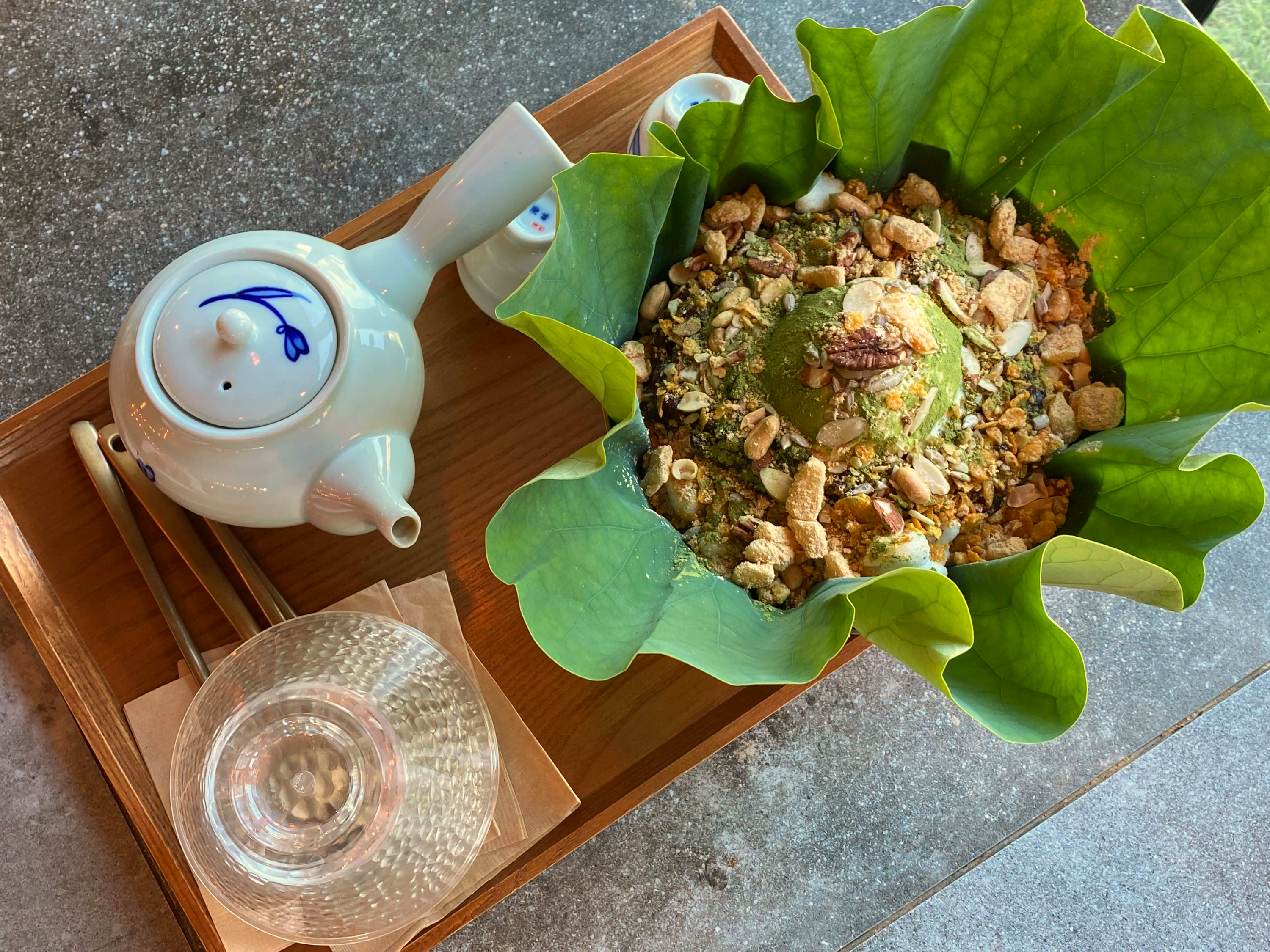 사실 연잎빙수도 연잎빙수이지만 더 기대가 됬던 건 연잎차였어요. 아무래도 카페 앞으로 연잎들이 자라고 있는 걸 두 눈으로 직접 보고 들어온 터라 그래서 더 궁금했던 거 같아요. 정말 수제 잎 차의 느낌.