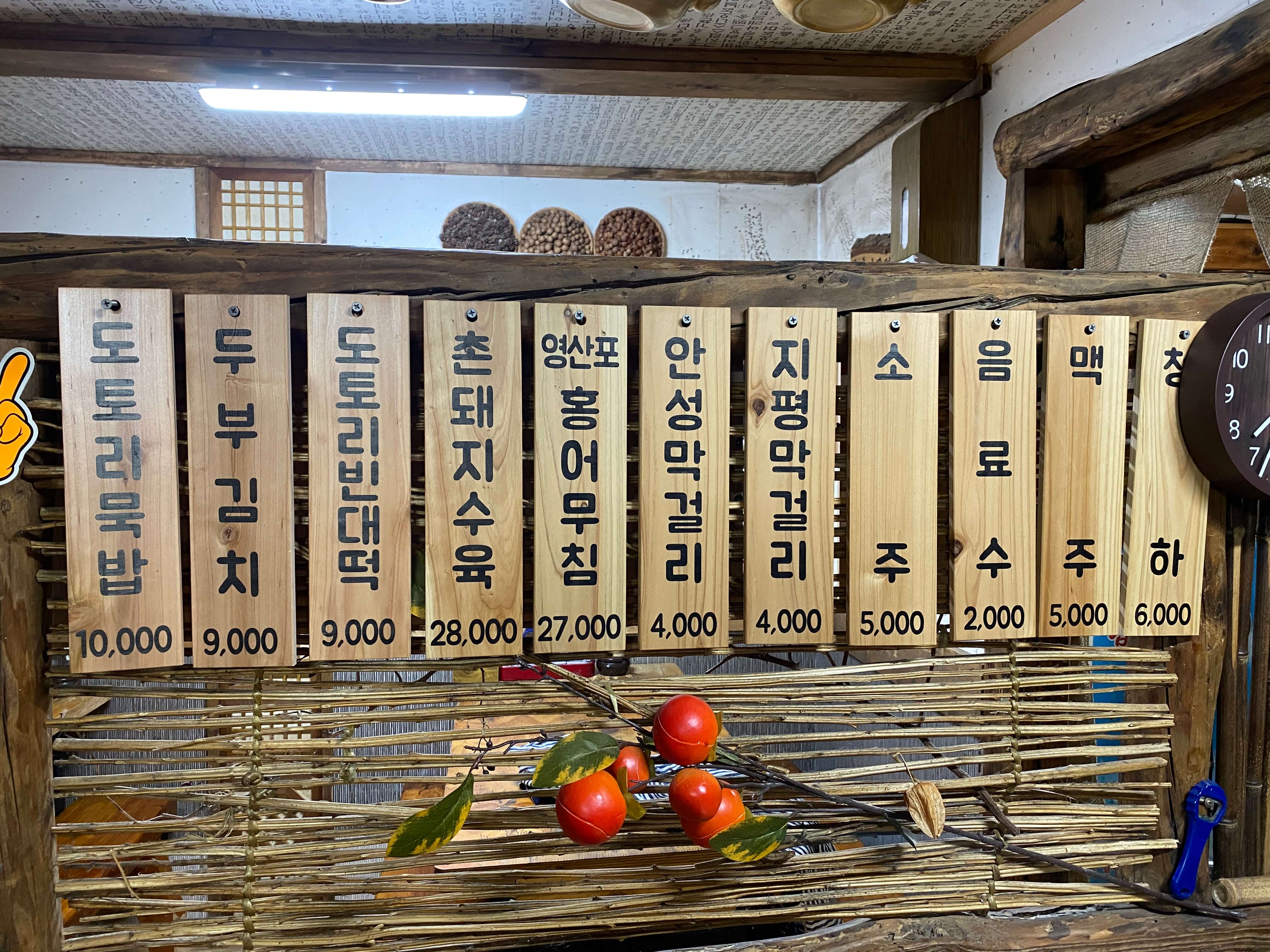 고삼 묵집의 메뉴입니다. 다양해보이지만 절반은 음료인 것으로 보아 진짜 음식 메뉴는 5개 정도입니다.