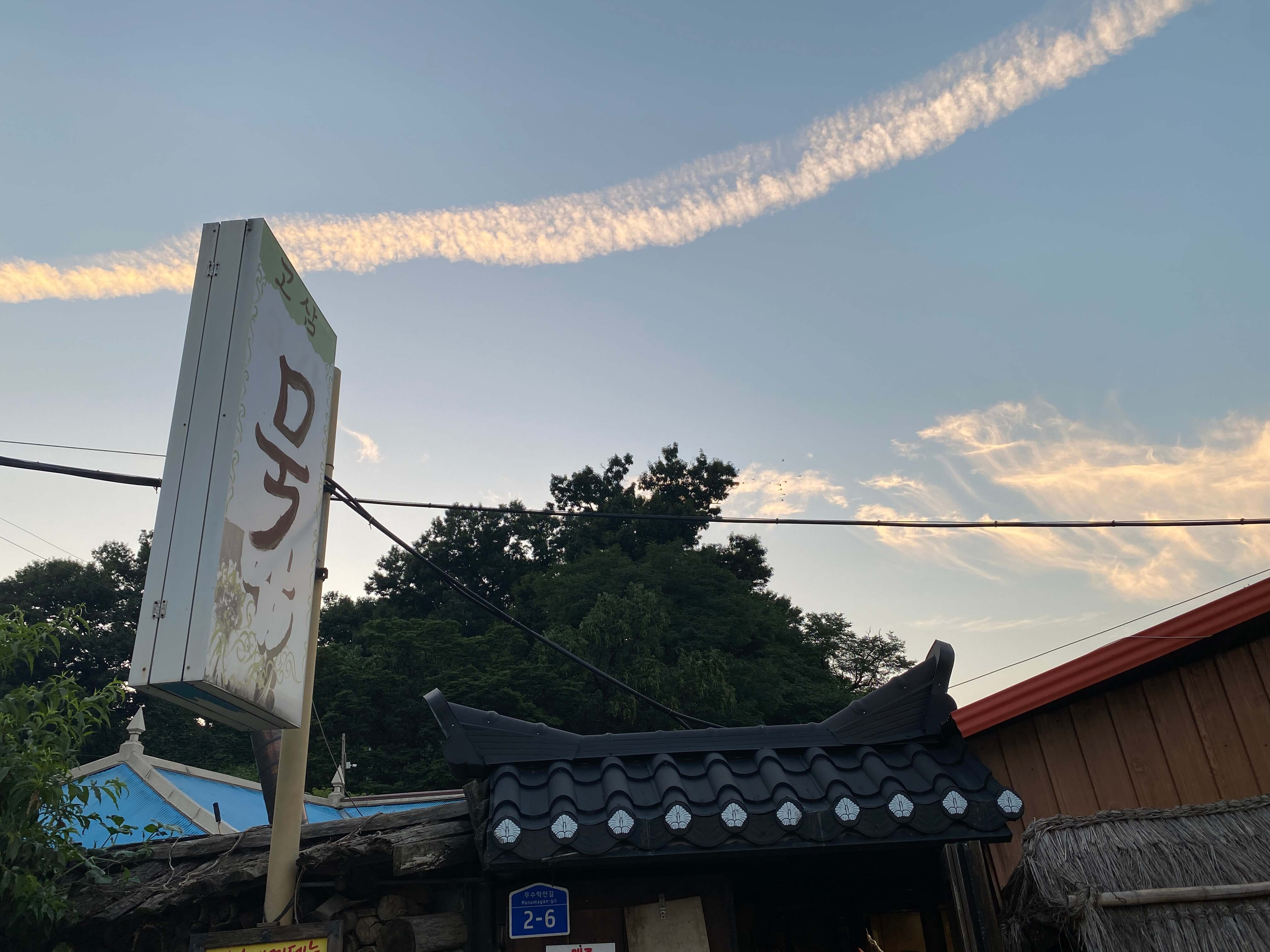 예쁜 하늘에 아래로 고삼 묵집 도착!