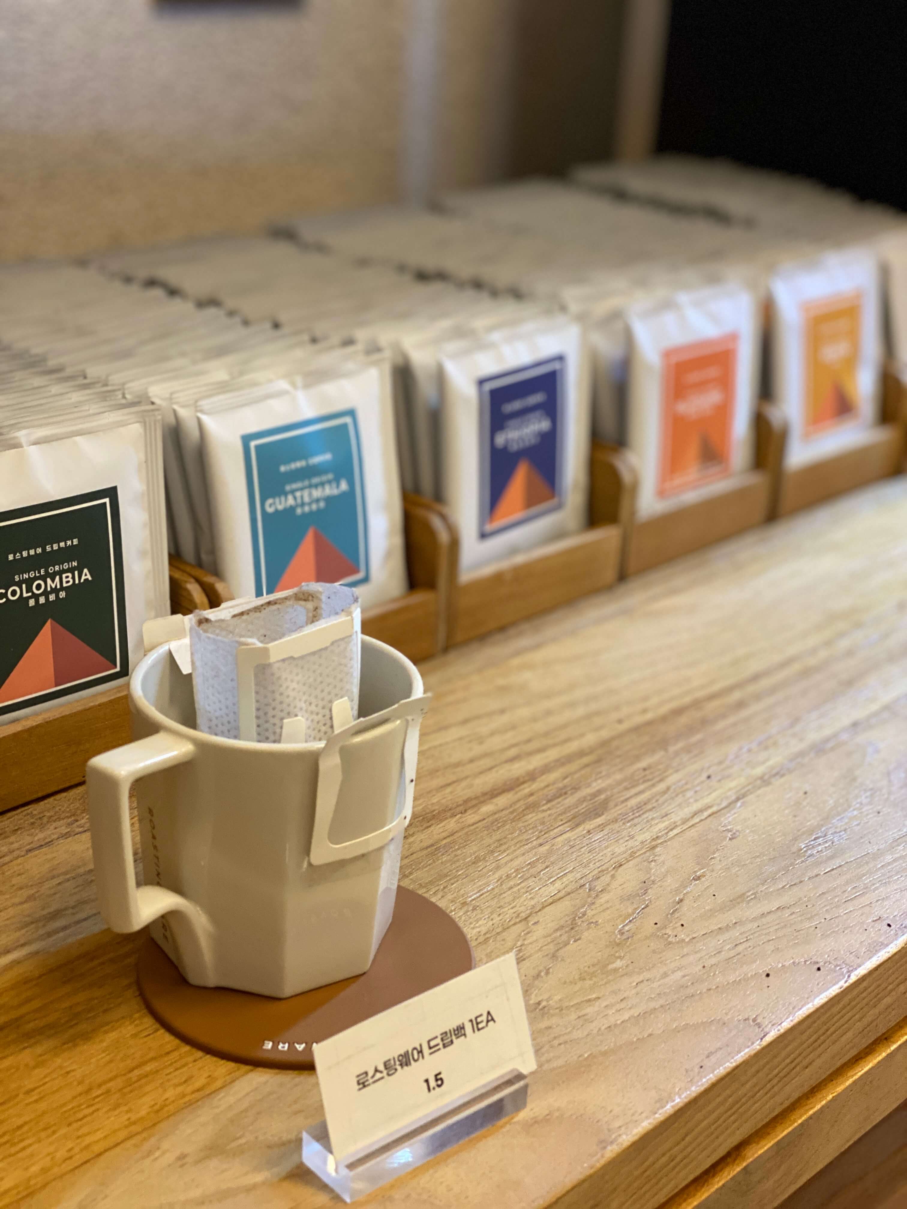 진주 로스팅웨어에서는 원두별로 드립백도 판매중이에요. 예전에 로스팅웨어 드립백 구매해서 지인한테 선물 했었는데 패키징도 예뻐서 선물 받는 분도 좋아하시더라구요. 괜히 저두 뿌듯했어요. ^^