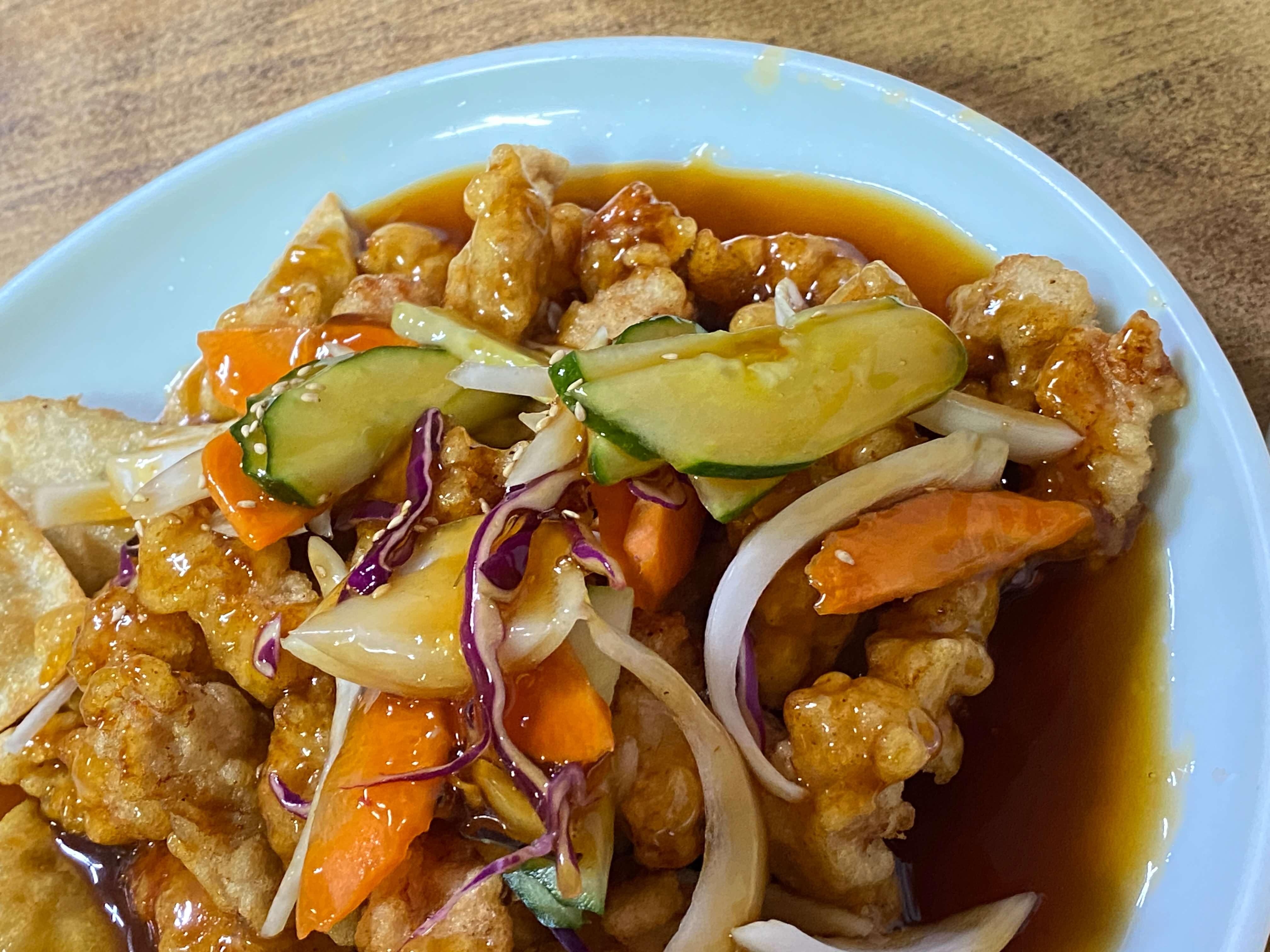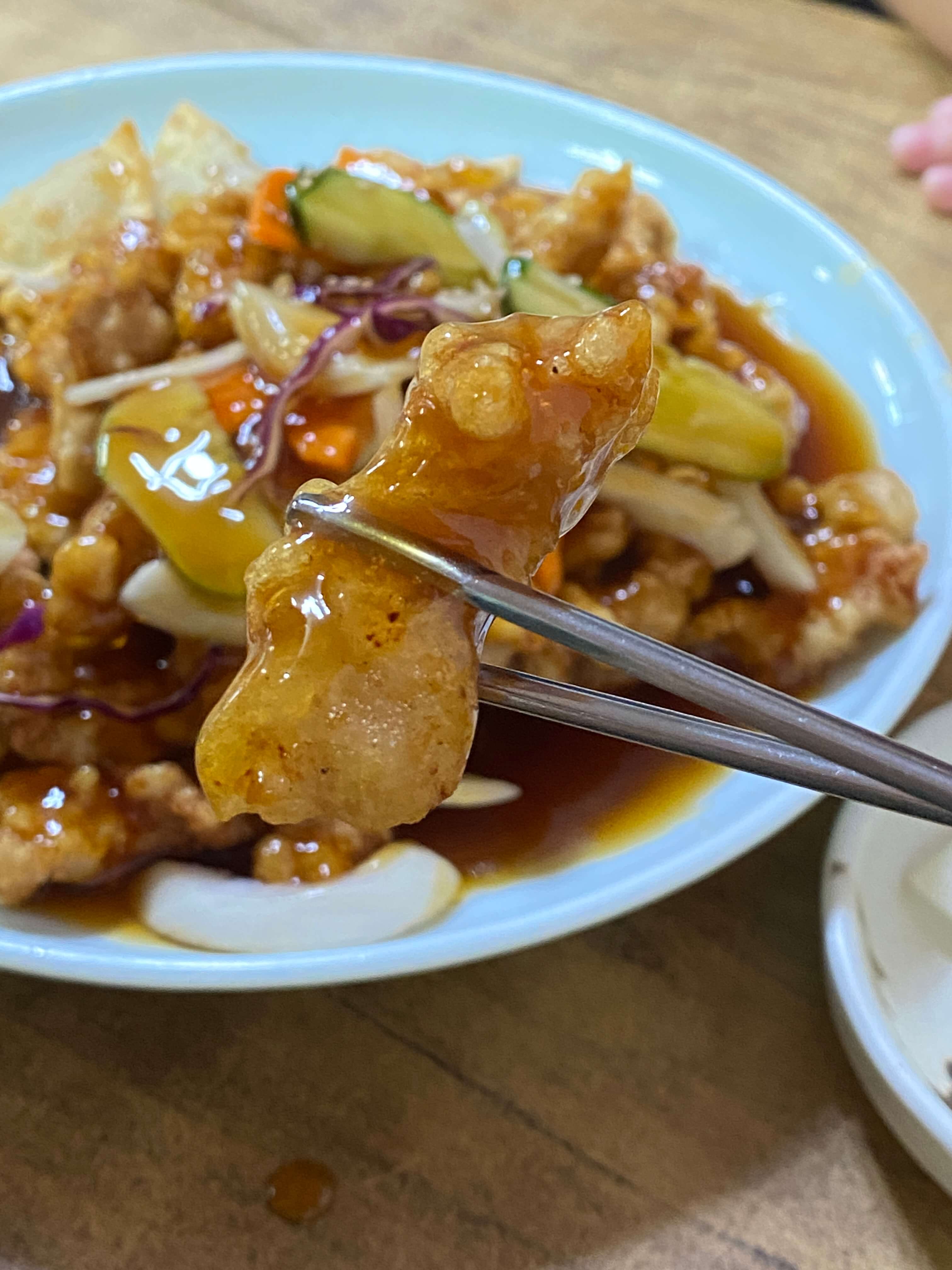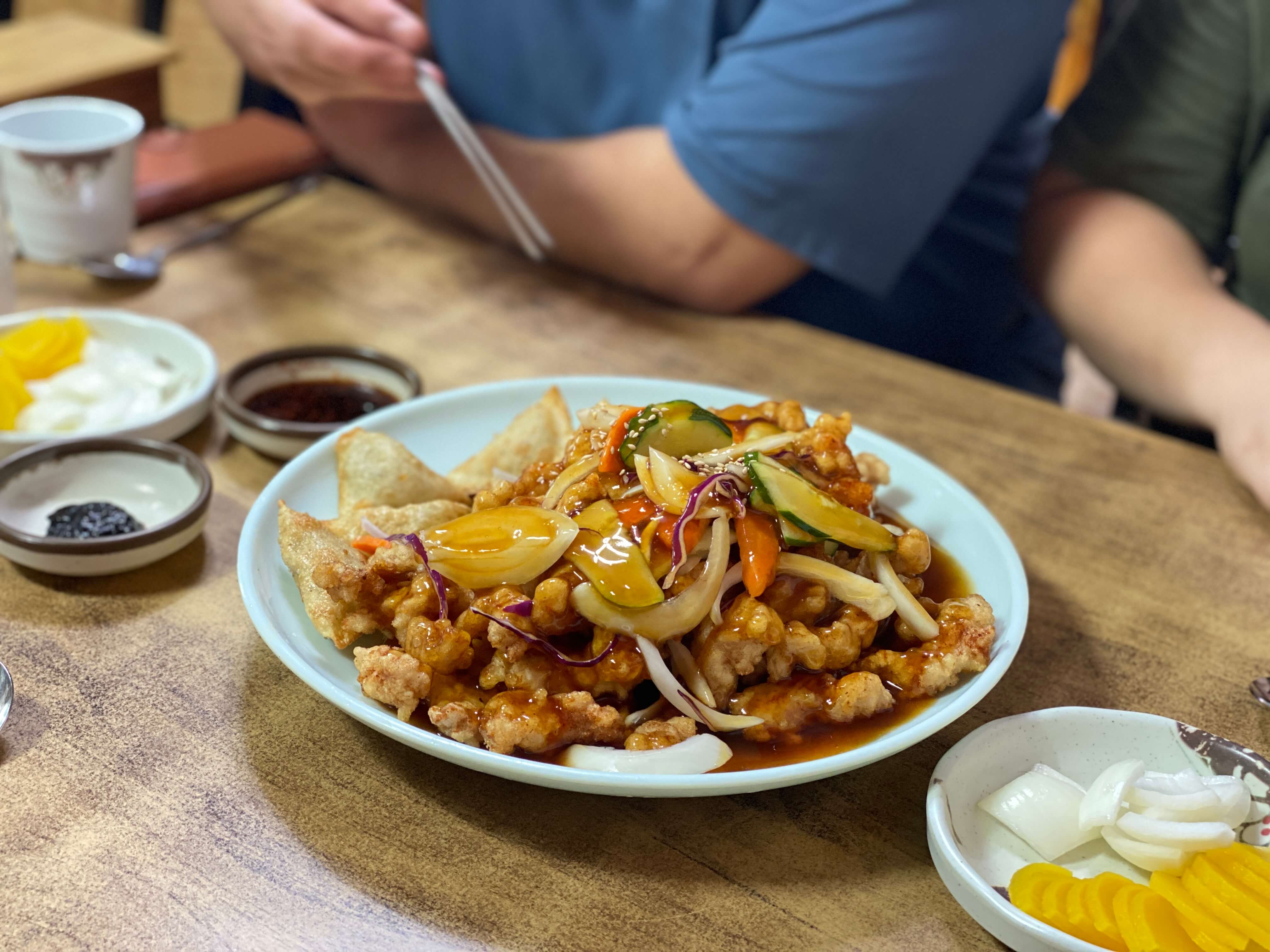 옛날짜장의 탕수육은 쫀득쫀득한 식감이 좋았어요. 그리고 소스도 너무 달지도 너무 새콤하지도 않고 탕수육에 딱 어울리는 맛의 소스여서 잘 어울리고 맛있었어요. 대자였지만 4명이서 먹다 보니 금방 없어지더라고요.