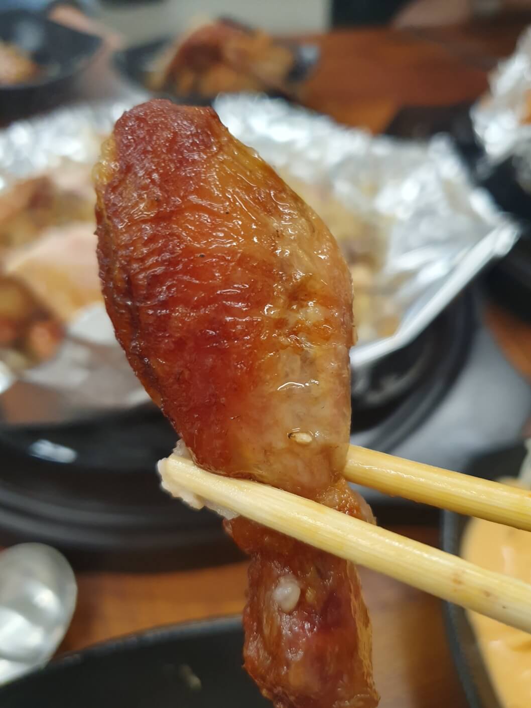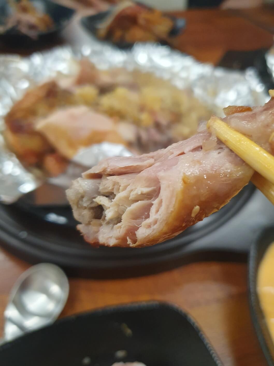 역시 구이라 그런지 튀긴 치킨에 비해서 훨씬 담백한 맛이었어요. 그리고 생각 외로 엄청 부드러워서 놀랐습니다. 껍질도 적당히 바삭하고 쫀득하니 진짜 맛있었어요. 역시 닭껍질은 말뭐말뭐..