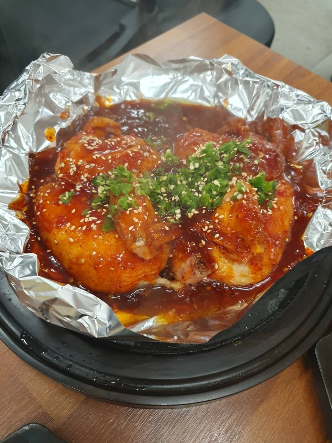 제 친구들은 한방 매운 통닭이 젤 맛있다면서 먹었어요. 매운 소스에다가 매운 청냥고추까지 올라가 있어서 끝판왕이었어요. 그래도 완전 못 먹을 만큼 매운맛은 아니라서 다들 잘 먹었는데 맵찔이들은 조금 힘들어했습니다. >, <