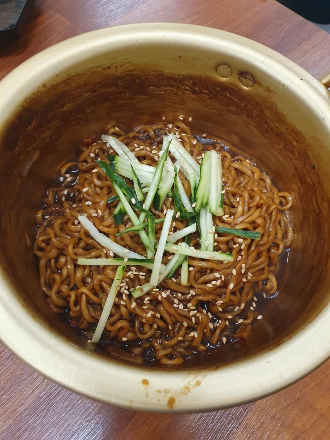 입가심으로 조선한방통닭-파인애플샤베트 8,000원/ 짜파게티 4,000원