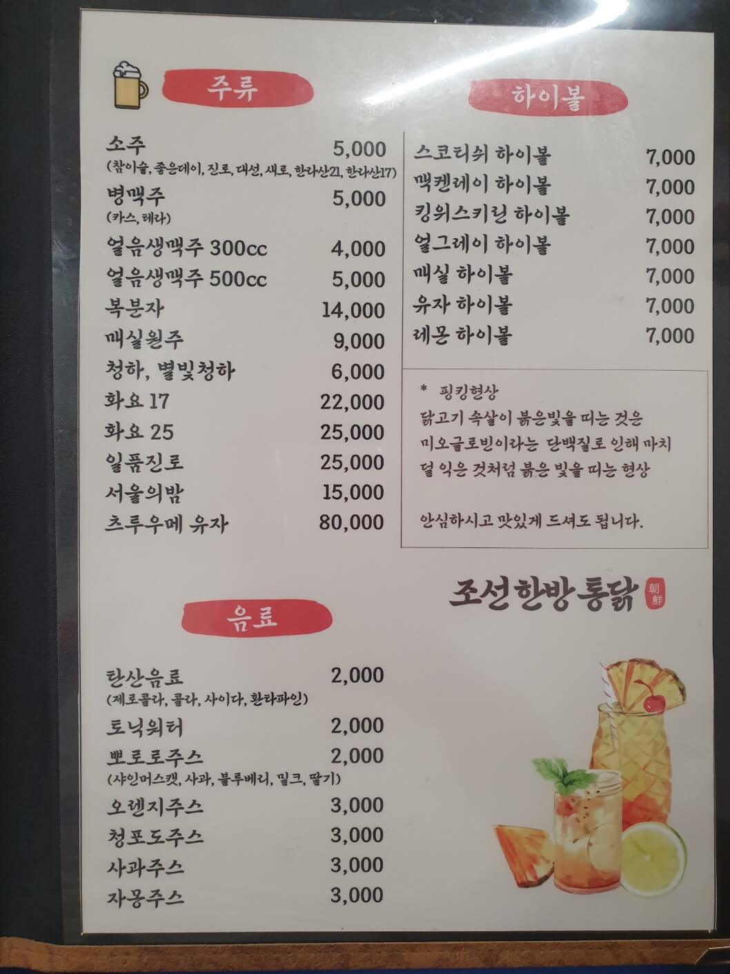 치킨 메뉴 사진은 찍지를 못했네요.ㅋㅋㅋ