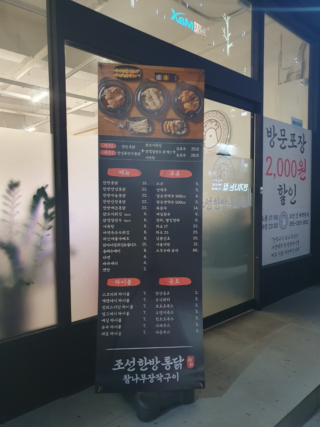 창원 조선한방통닭 메뉴
