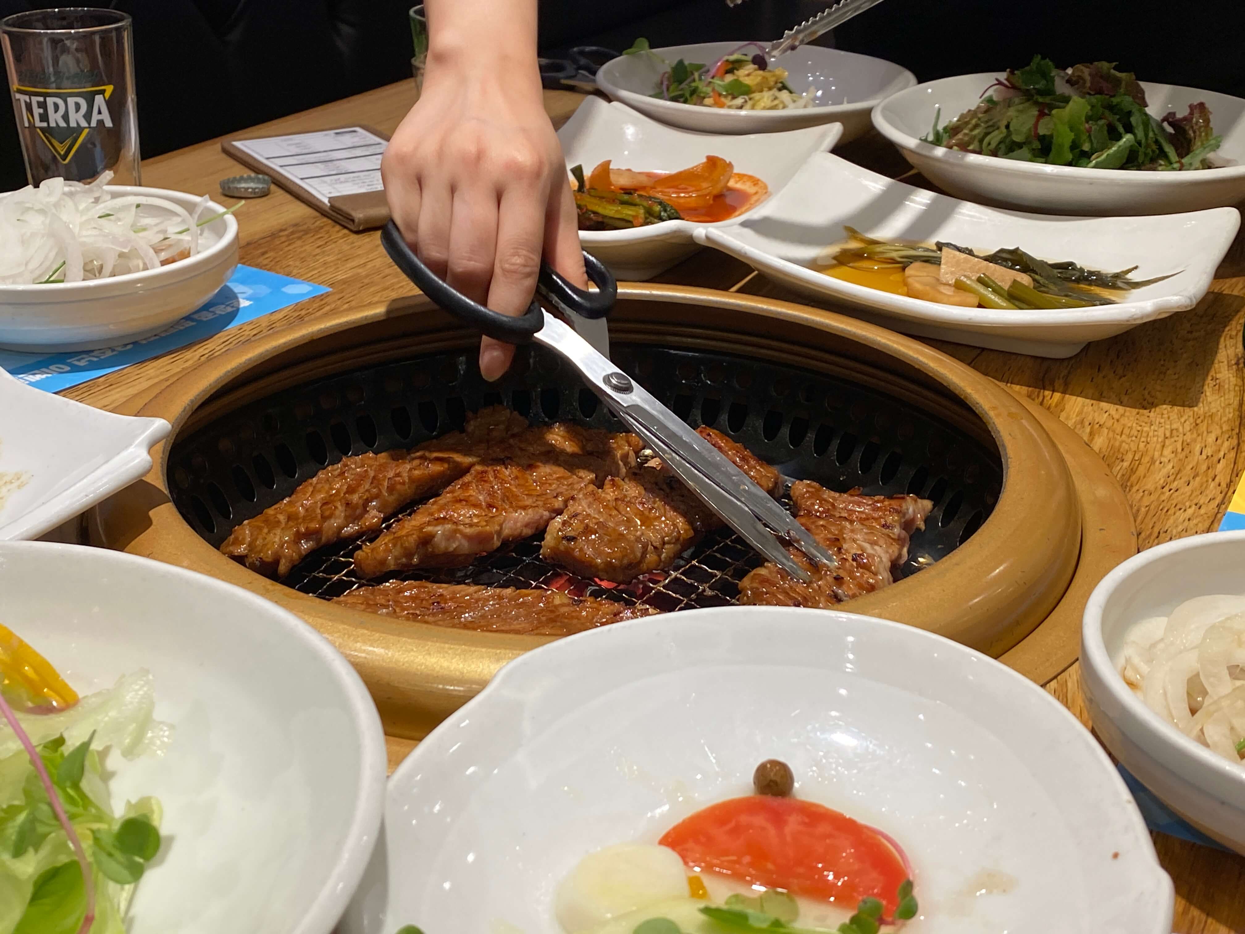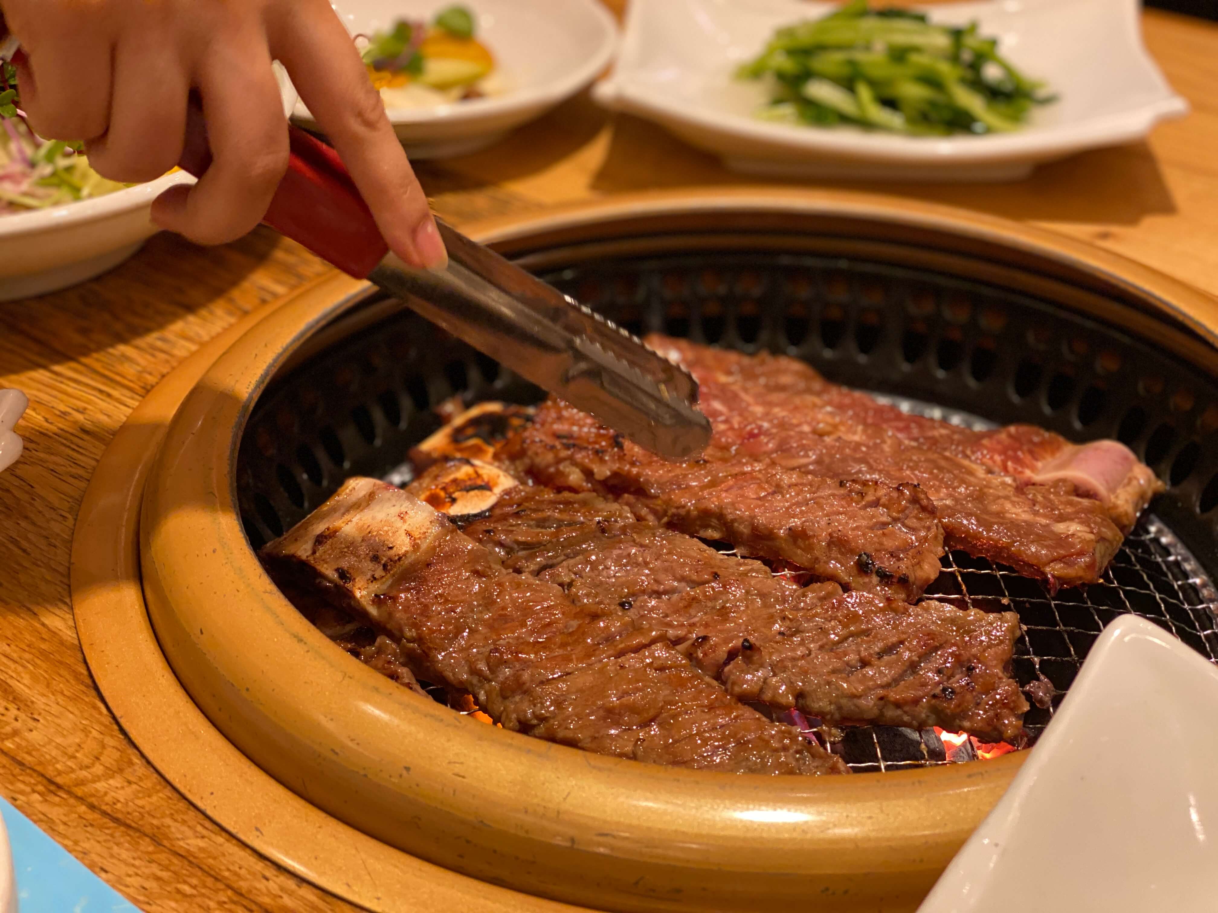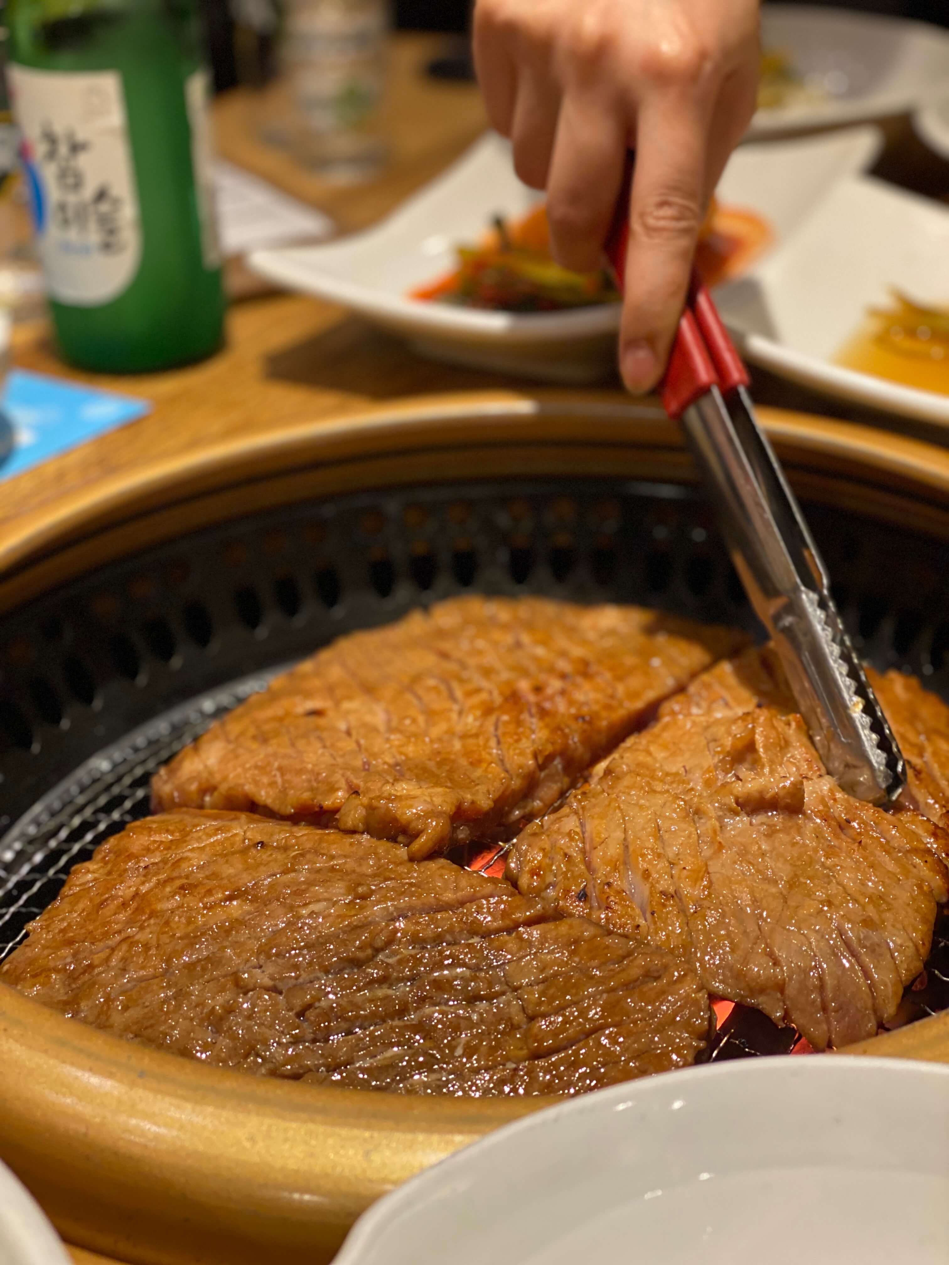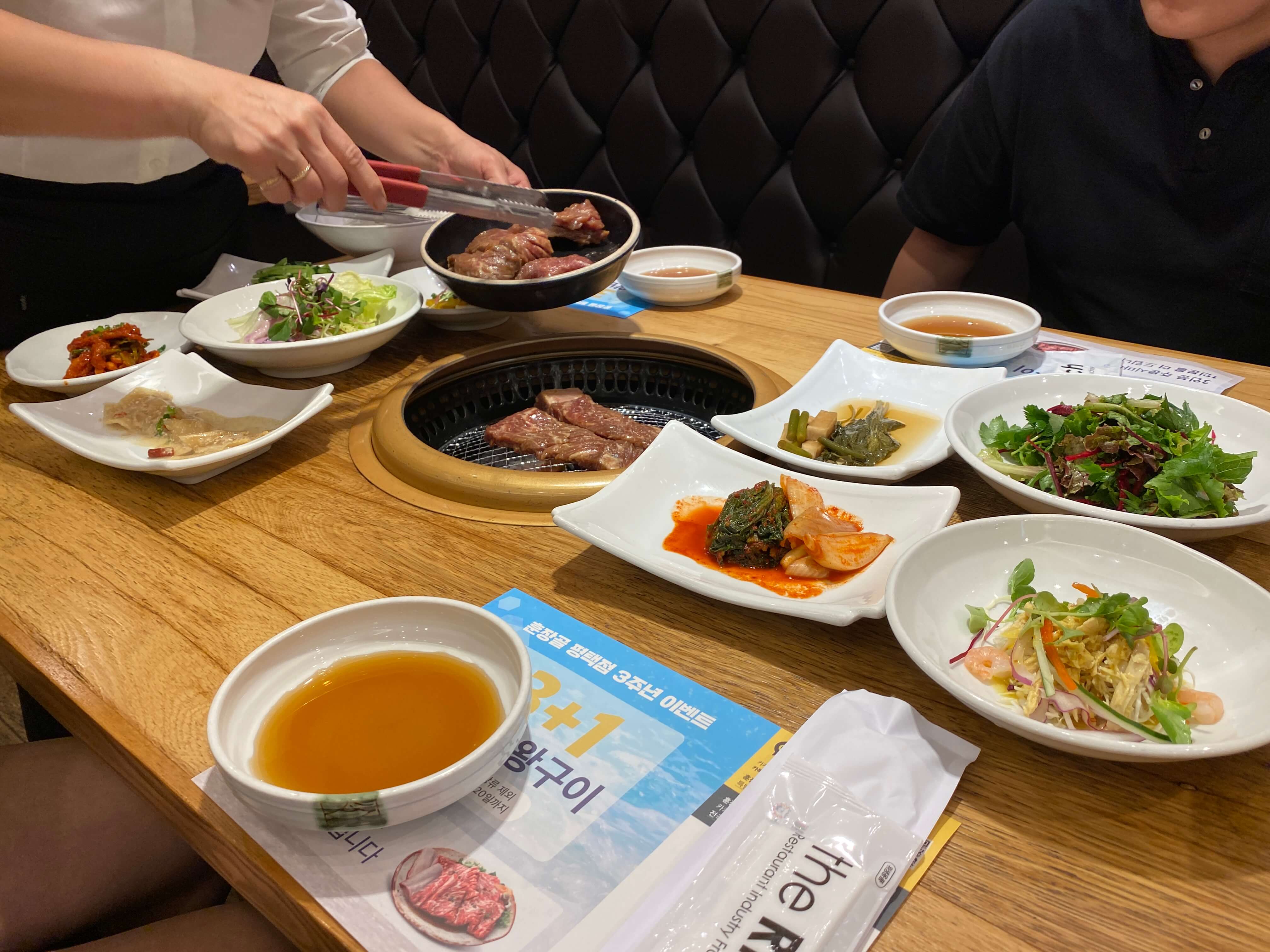 주문한 고기들이 나오고 직원분들께서 고기를 놓아주셨어요. 중간 중간 계속 오셔서 고기를 구워주시고 체크해주셨습니다.