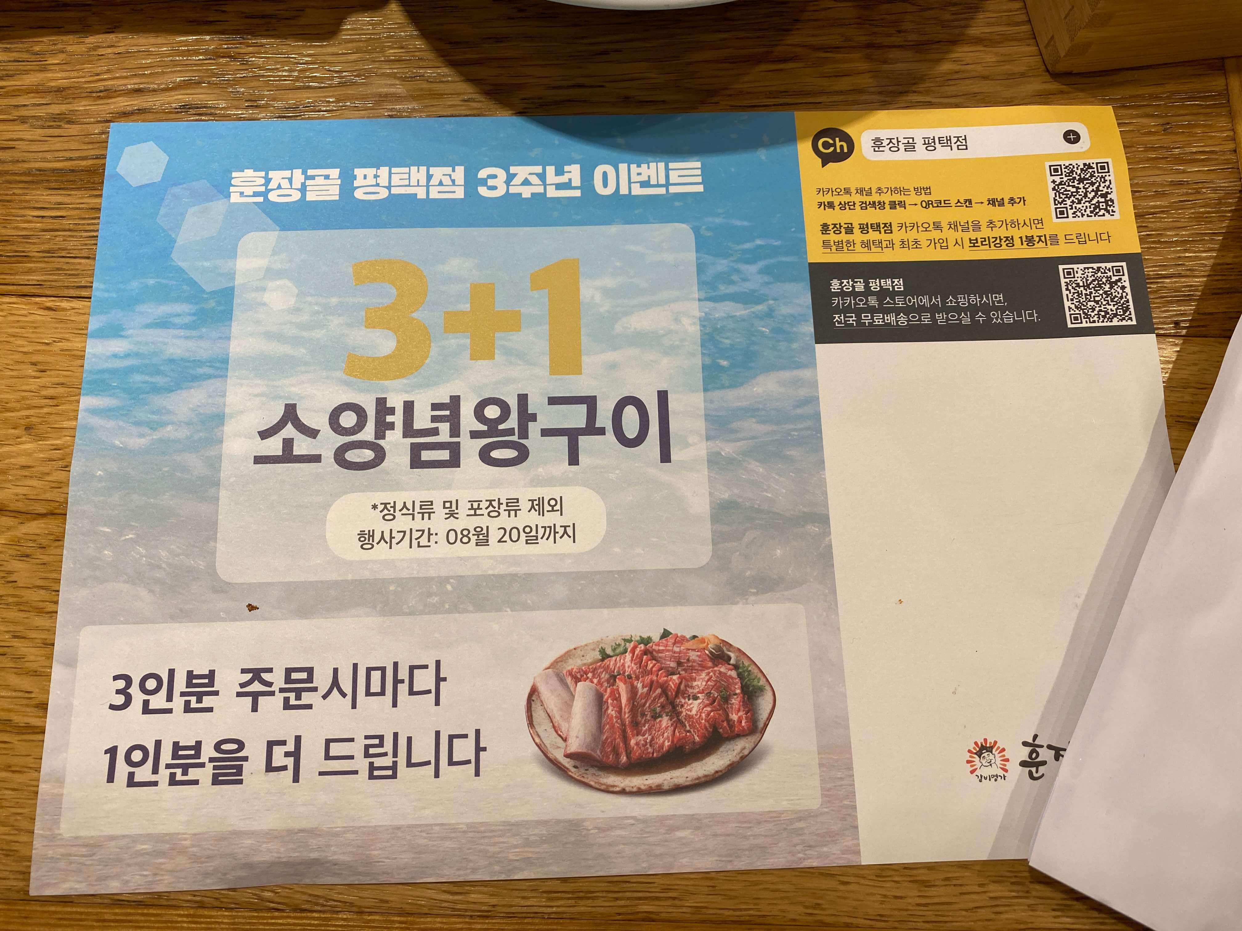 현재는 훈장골 평택점의 3주년을 맞이해 소양념구이 3+1 행사를 진행하고 있다고 합니다.