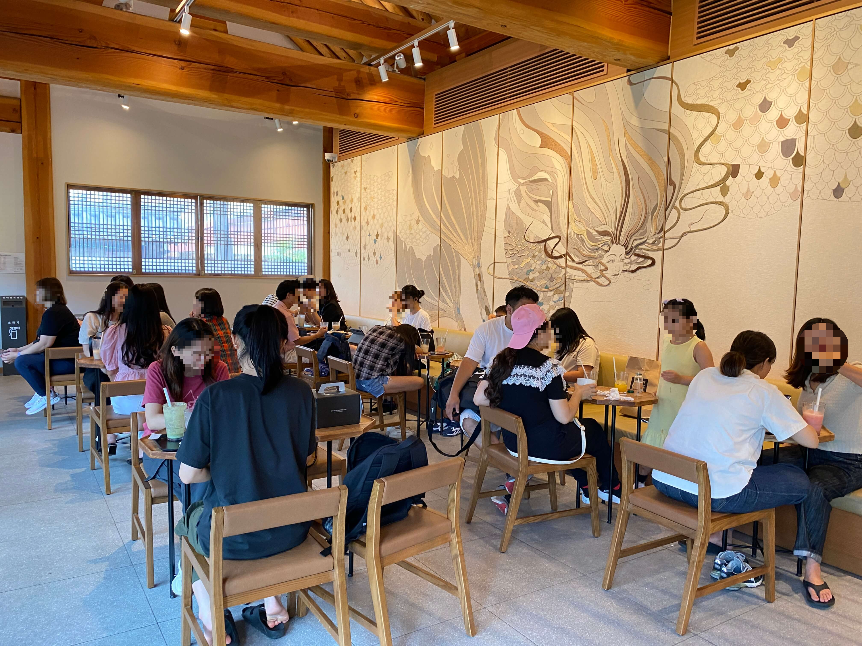 때문에 외국 여행객들이 정말 많았습니다. 제가 방문했을 때에는 우리나라 손님이 반, 외국인 손님이 반 정도 되었던 거 같습니다. 덕분에 한옥 건물 안이지만 이국적인 느낌을 받았어요. 한옥 안에서 다양한 나라의 언어가 들리는 재미있는 경험이었습니다.