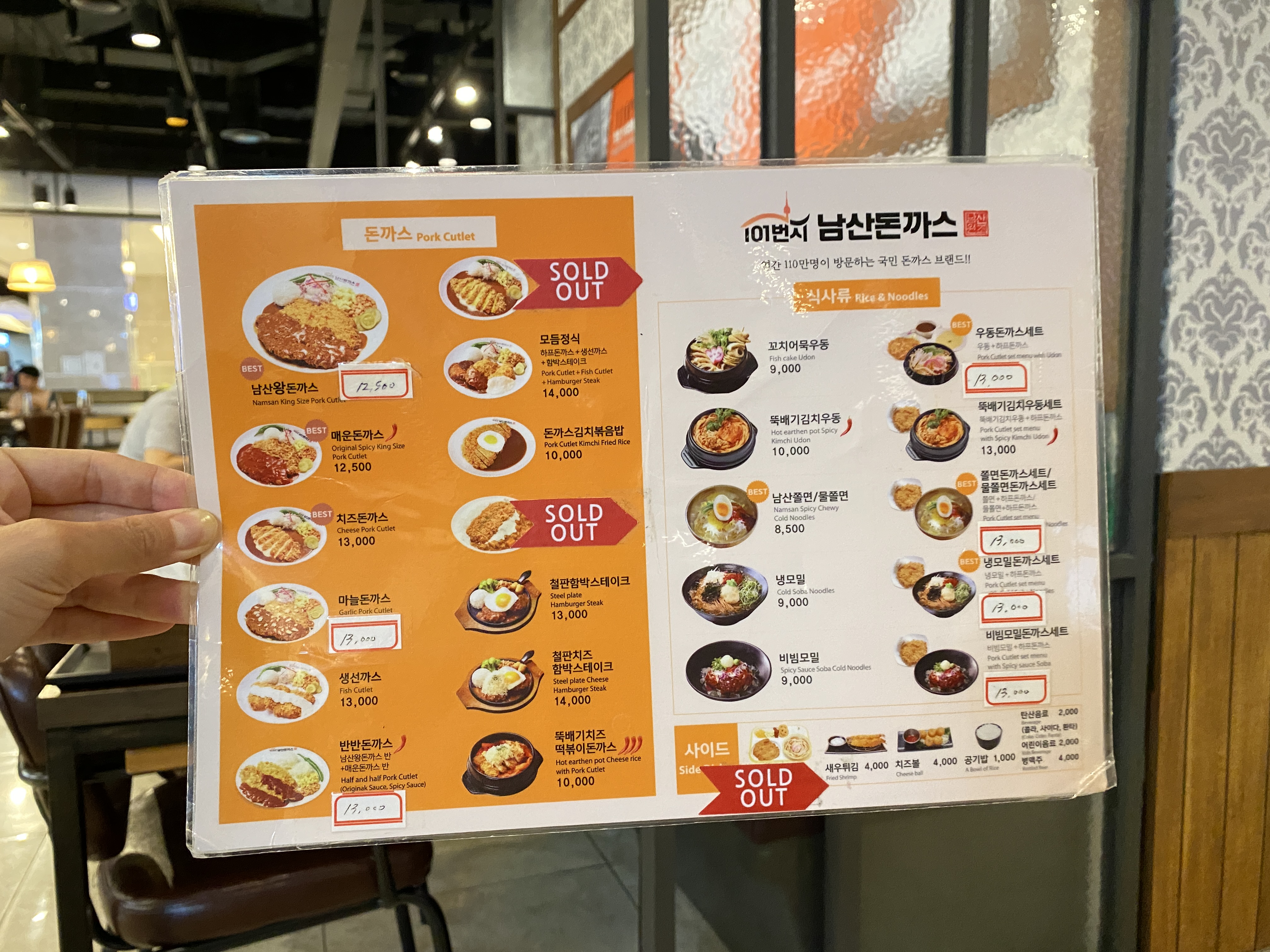 남산왕돈까스부터 시작해서 반반, 매운, 모둠, 치즈 등 다양한 종류의 돈까스와 우동, 쫄면, 모밀 등도 준비되어있었습니다.
