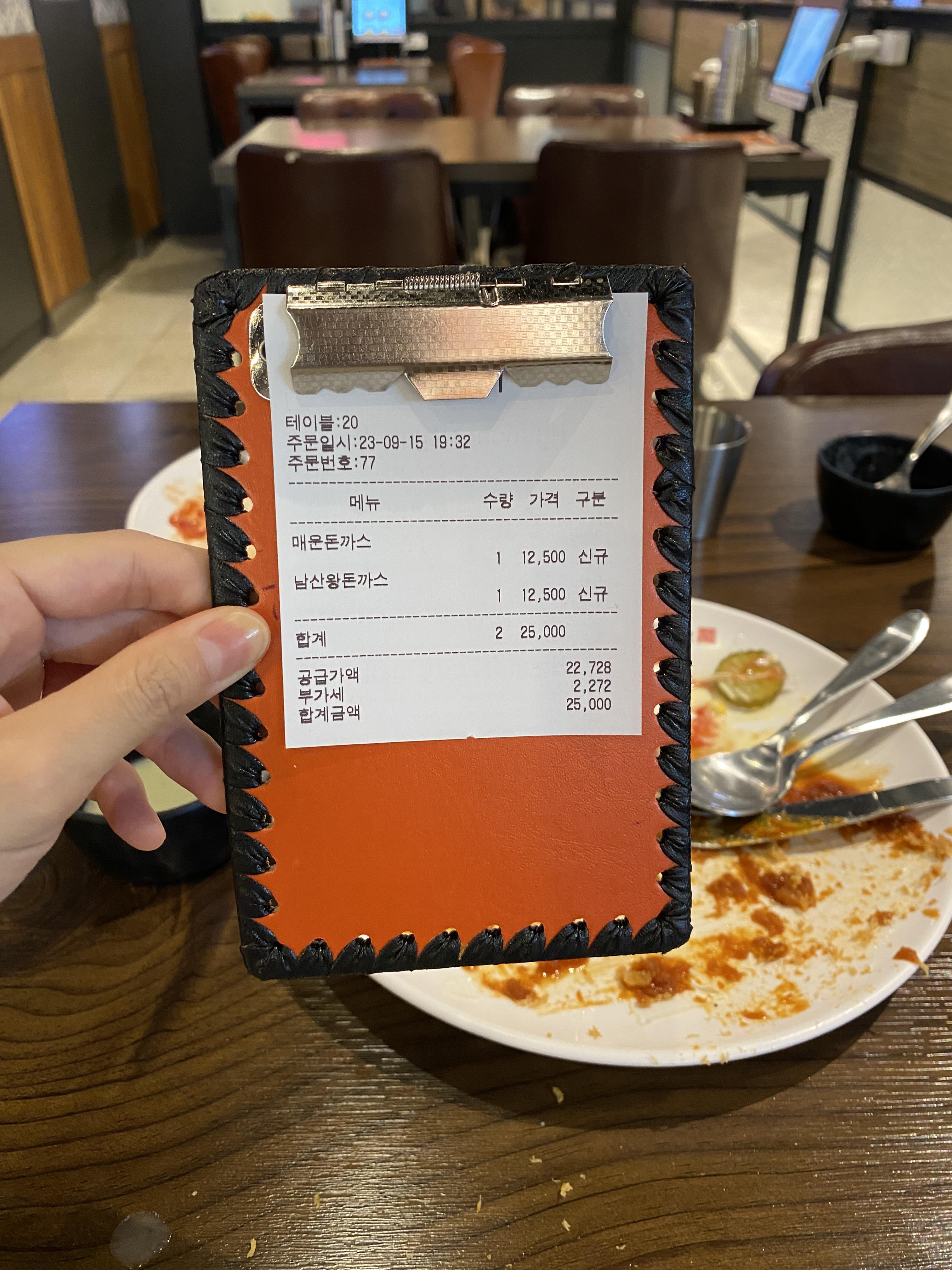 저는 제가 먹고 싶었던 매운 돈까스로 주문하고 신랑은 남산왕돈까스로 주문했어요. 가격은 두 메뉴 같았어요.