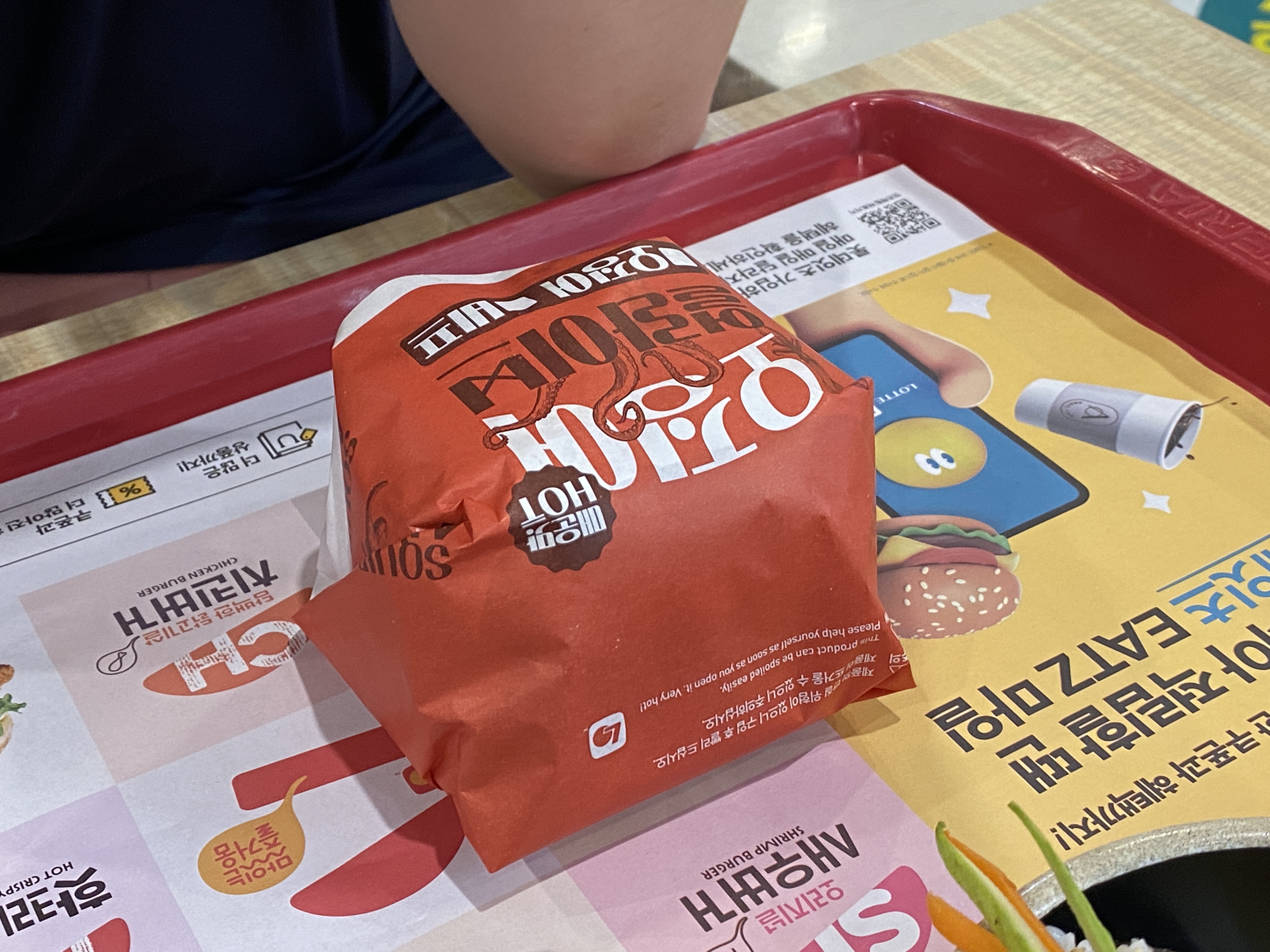 저희 신랑은 기본 오징어버거에다가 매운맛으로 주문했습니다.