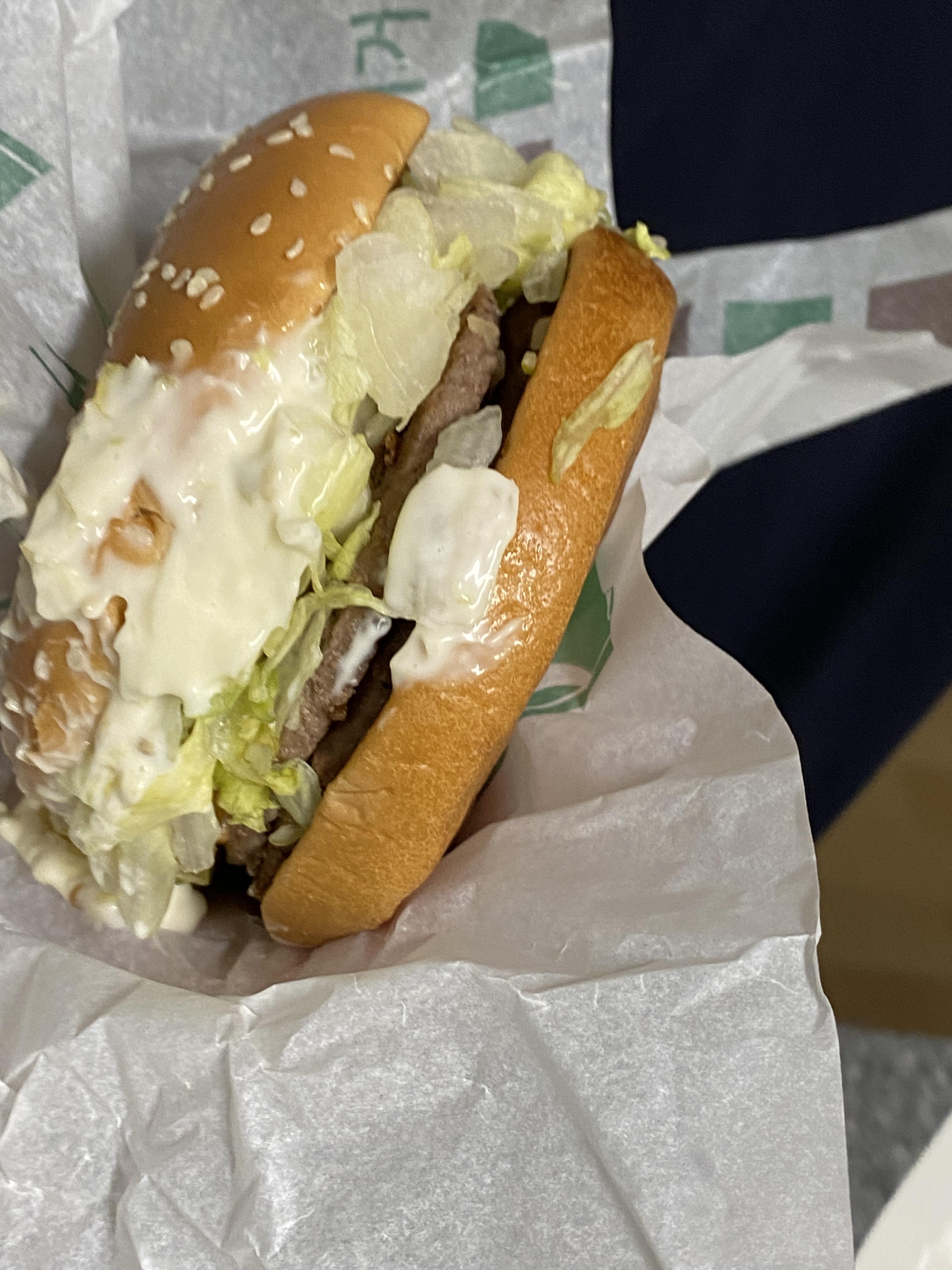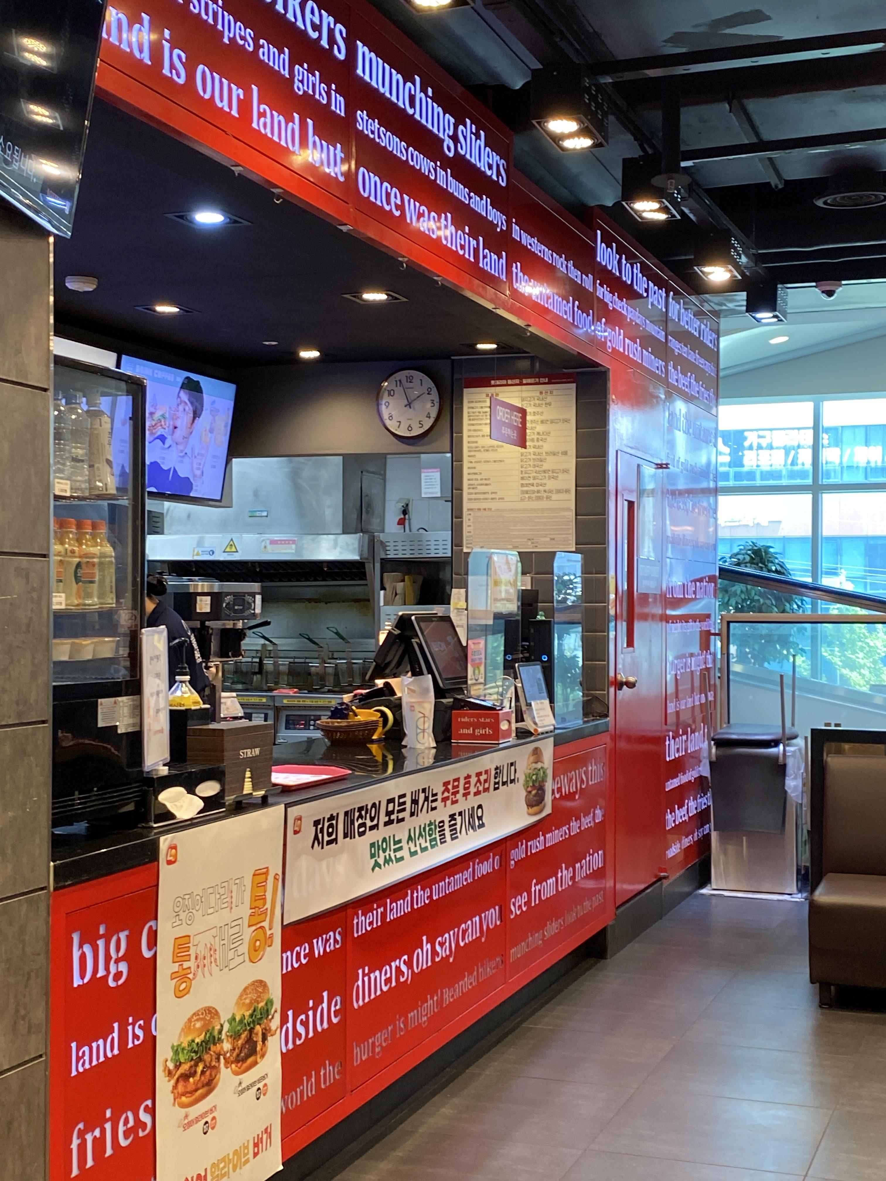 참깨빵 위에 순쇠고기 패티 2장, 특별한 소스인 고추크림치즈와 양상추까지는 같네요. :)