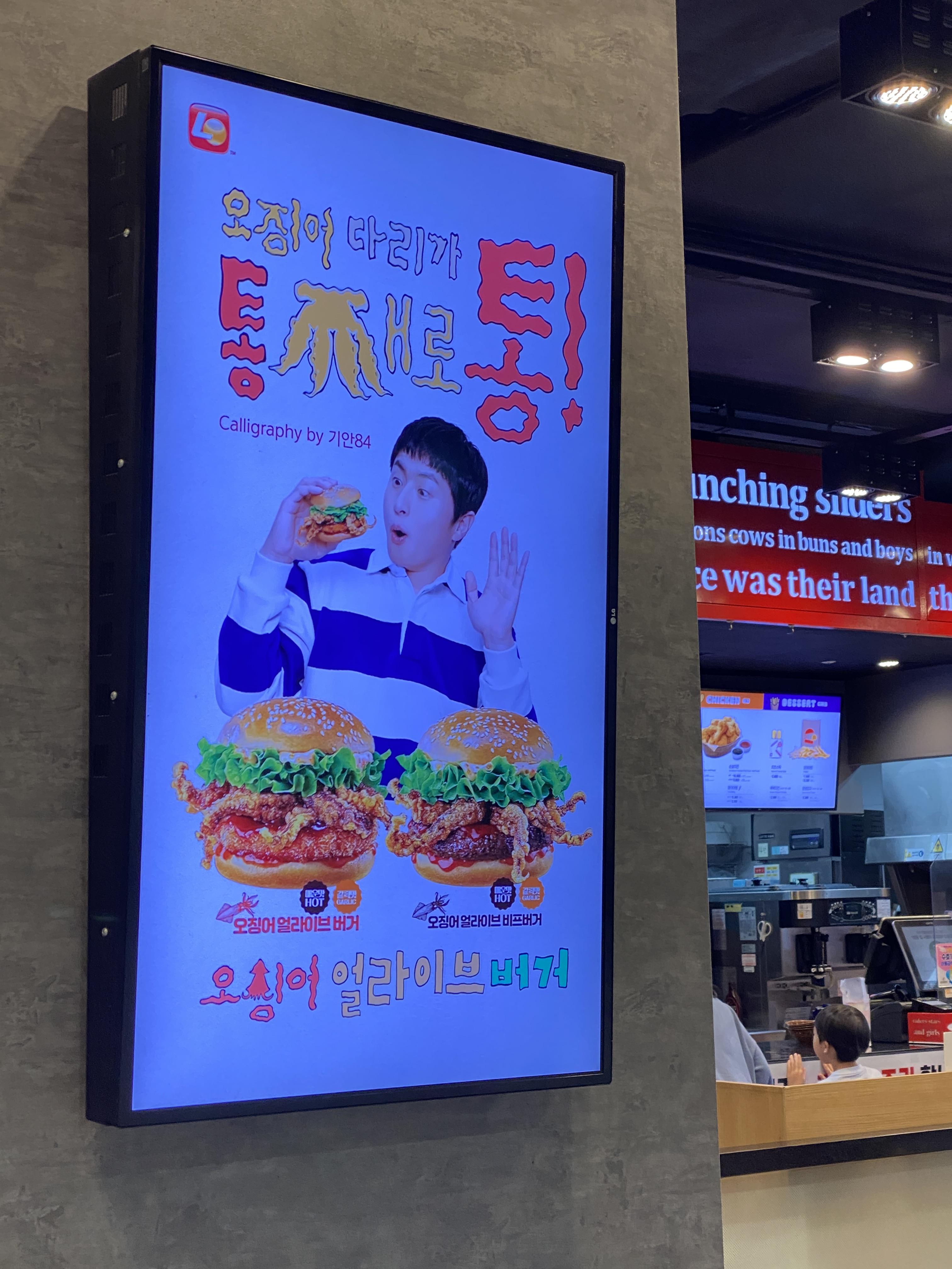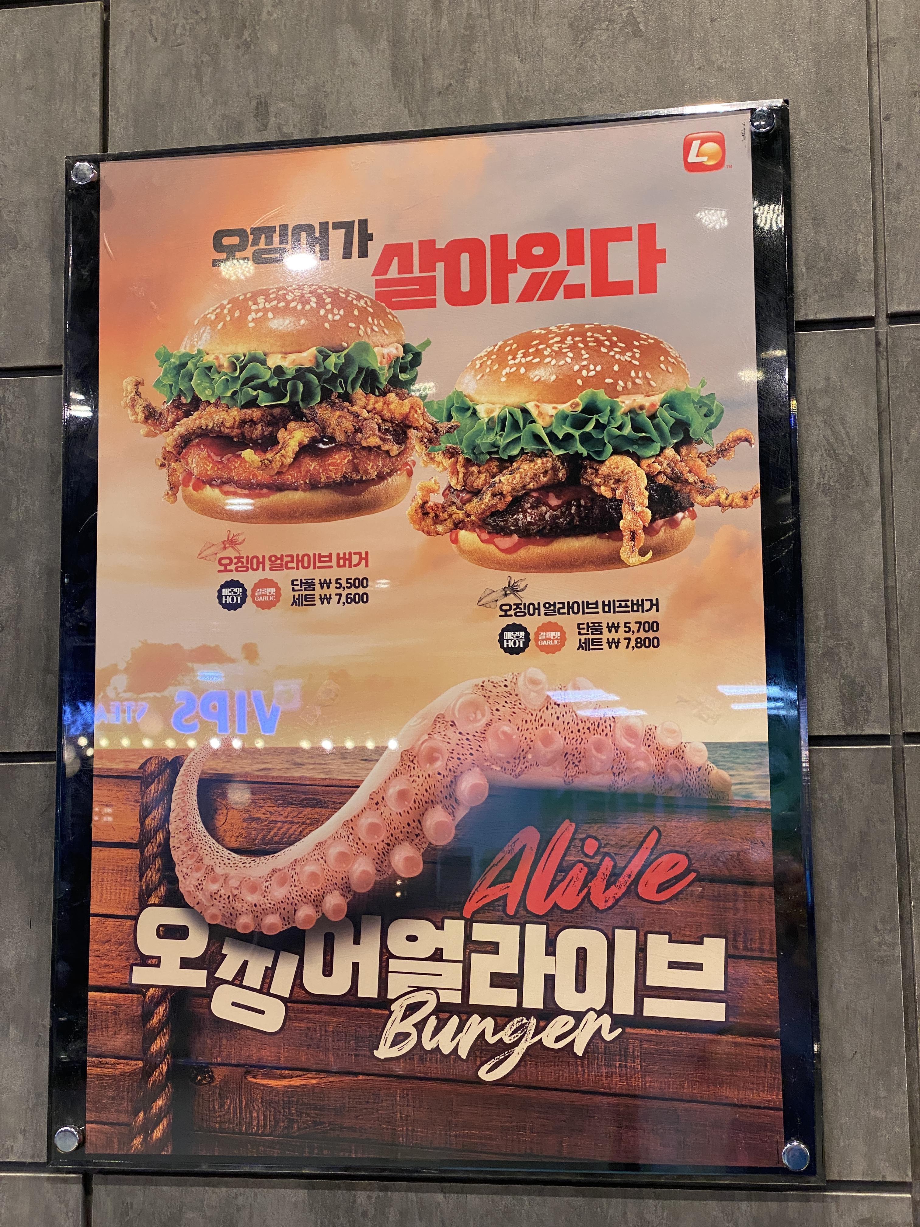 저희는 마산 양덕동에 위치한 롯데마트 롯데리아에 방문했어요. 포스터로 보이는 오징어얼라이브.. 비주얼이 살아있는 느낌이에요!!