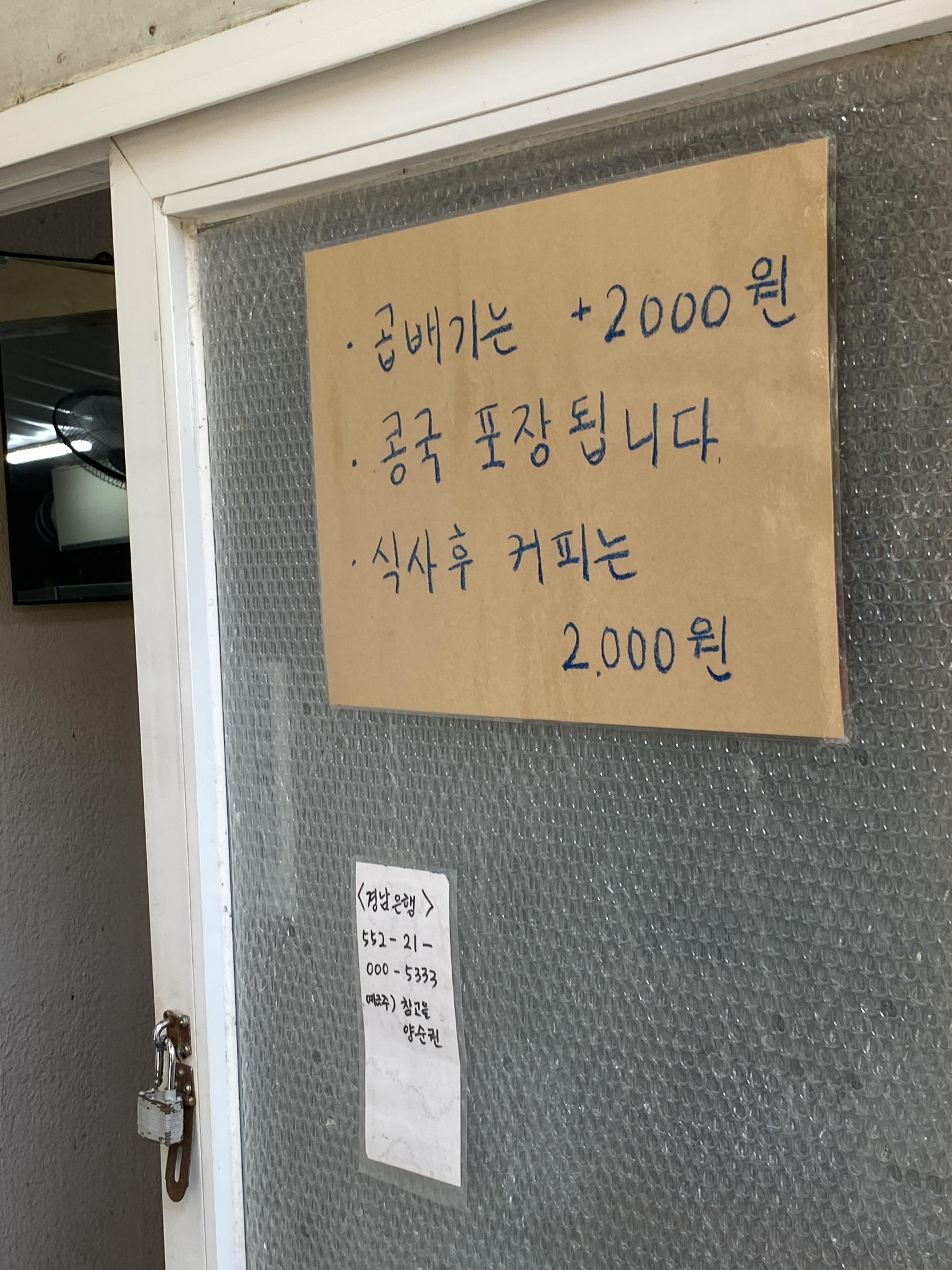 콩국 포장은 10,000원(만원)이라고 하네요! 콩국 포장해서 와야지~했는데 식당이 넘 정신없이 바쁘셔서 저도 나오기 바빠서 깜빡하고 그냥 왔네요 ㅠㅠ