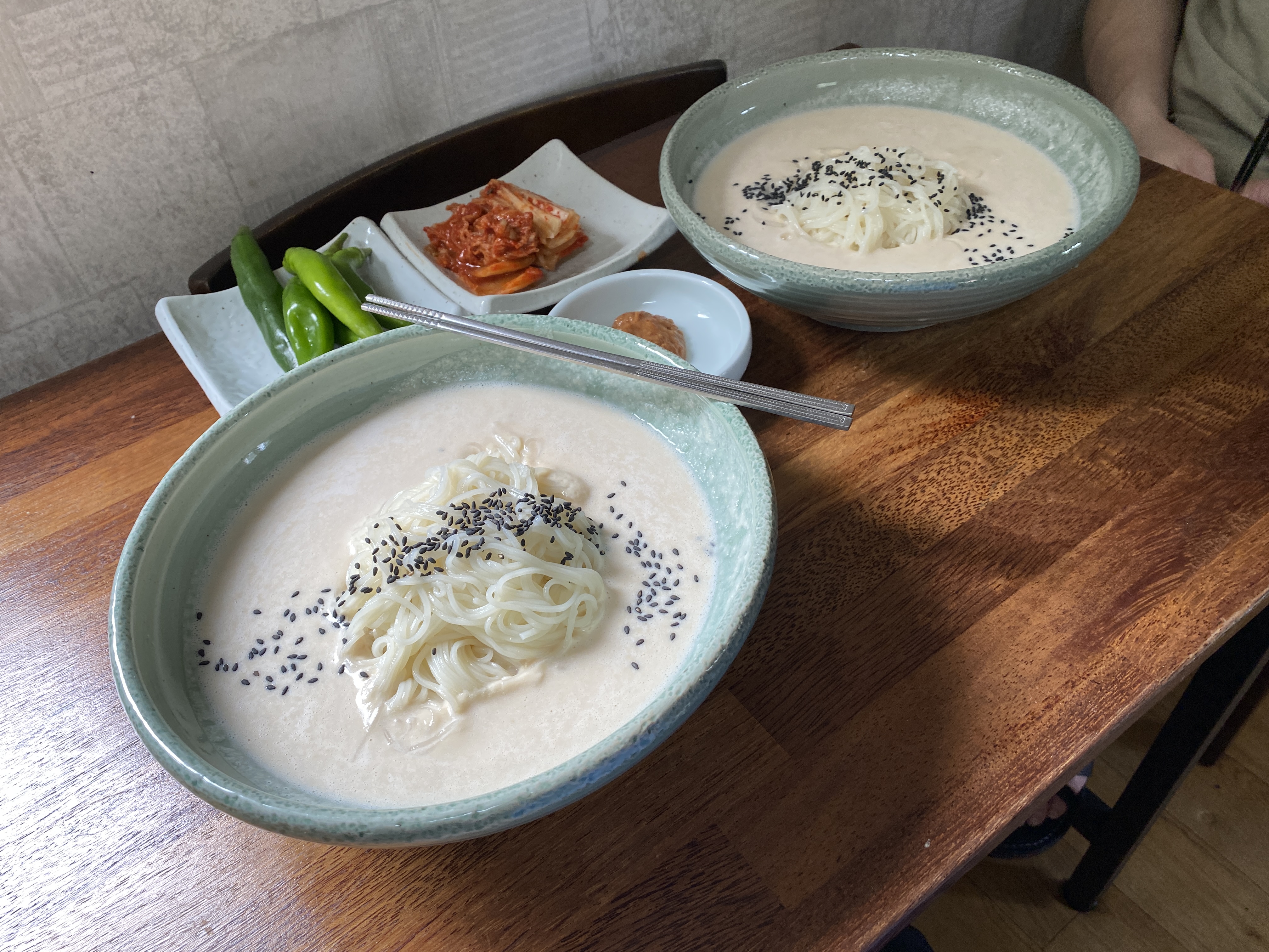 저희는 콩국수를 주문하고 나서야 메밀 콩국수도 있다는 걸 알았어요. 다음에 다시 와서 메밀 콩국수를 먹어봐야겠어요.
