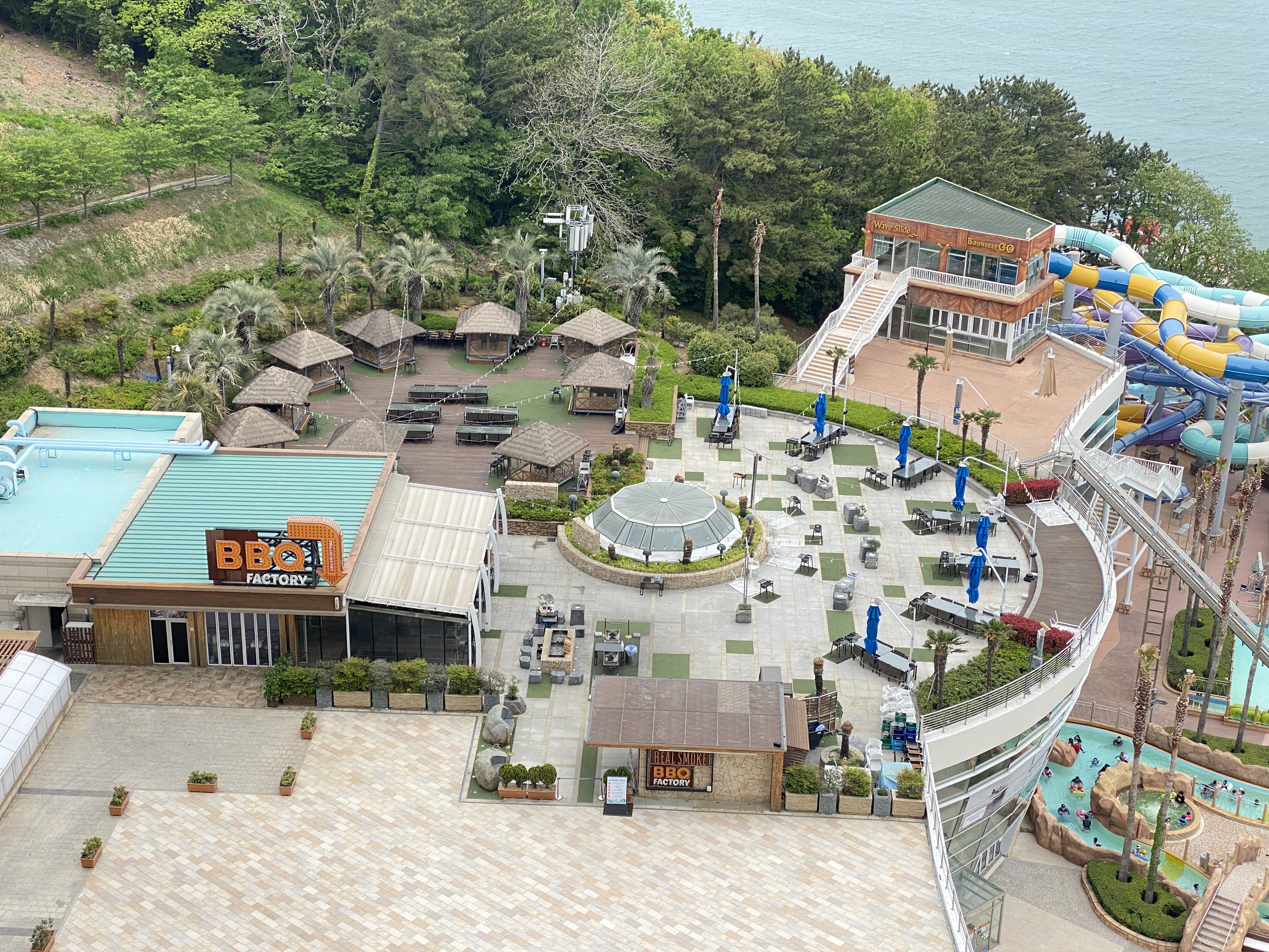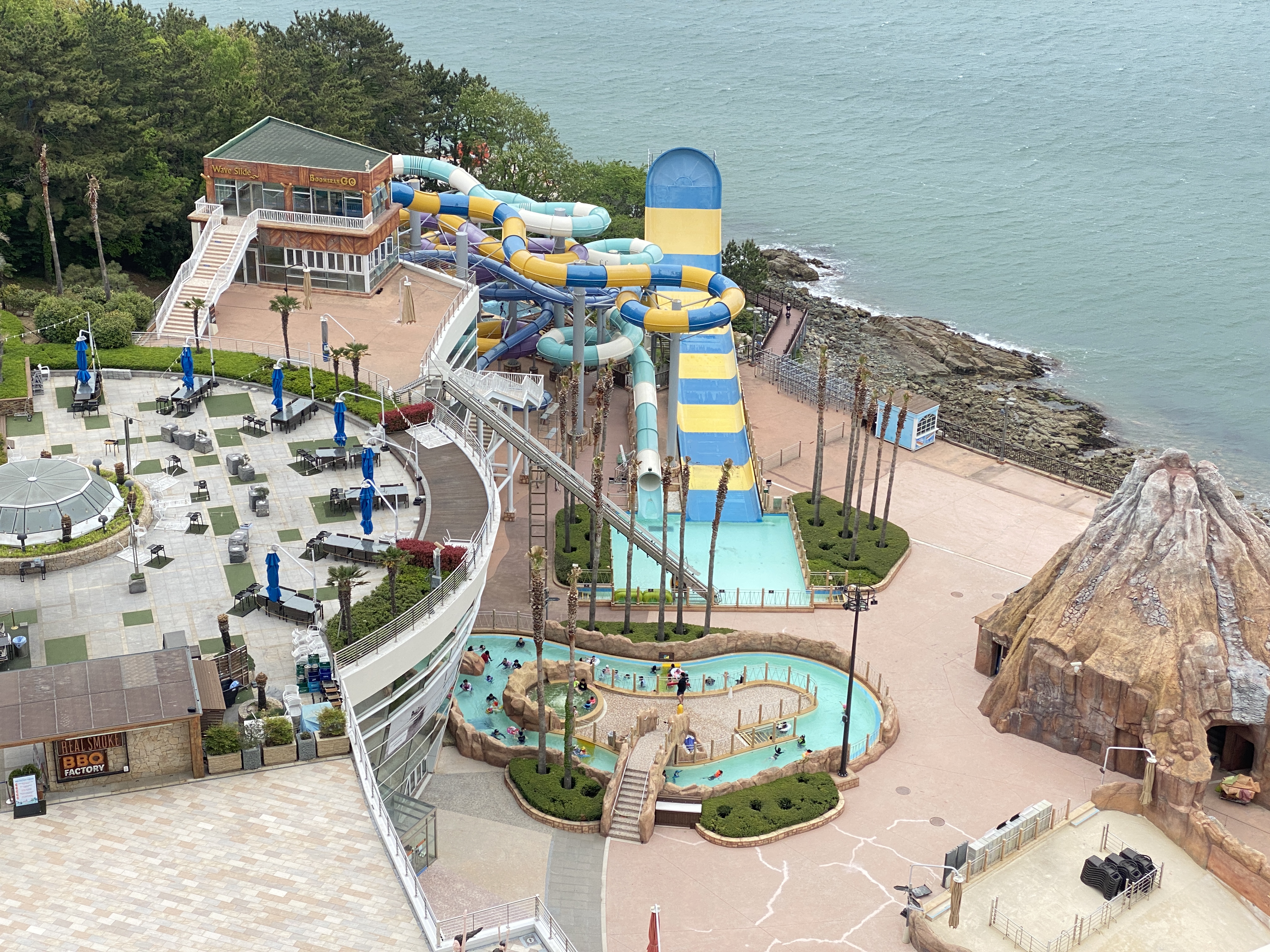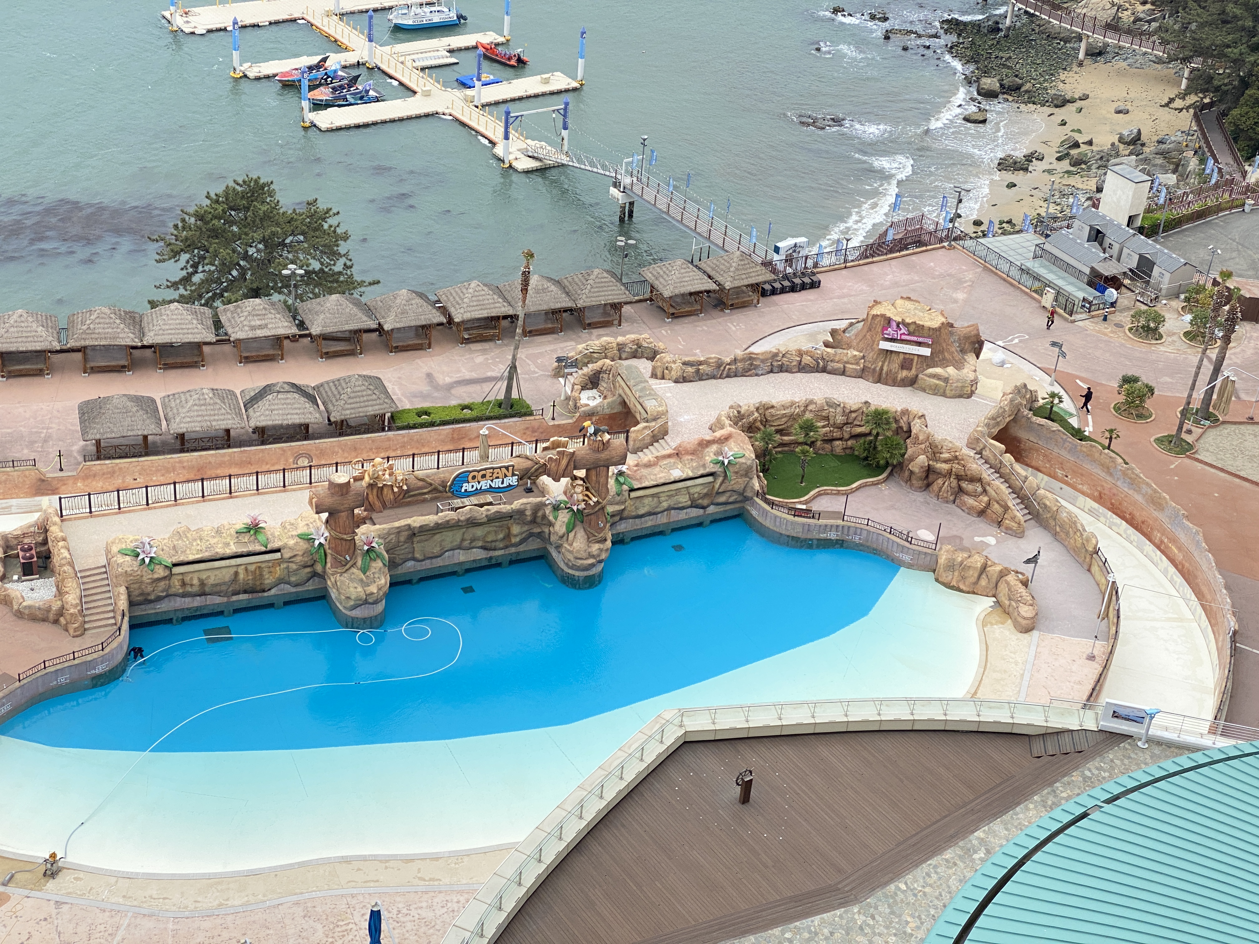 숙소 베란다에서 내려다본 모습입니다. 정말 넓어서 보는 순간 감탄사가 저도 모르게 나왔습니다. 저희는 따로 워터파크를 이용하지는 않았지만 순간 가볼까 고민이 되긴 했습니다. 워터파크는 보이는 것 외에도 실내 워터파크도 있다고 합니다. 주로 키드존이라고도 많이 알려져 가족단위로 많이 이용하는 듯 합니다. 소노캄 거제를 예약하고 방배정을 받으면 소노캄 거제 내부에서 사용할 수 있는 다양한 할인 쿠폰들을 제공합니다. 그 중 워터파크 할인 쿠폰도 있습니다. 대게 10% 할인에서부터 25%할인까지도 가능한 쿠폰들이 있으니 잘 활용하시면 도움이 됩니다.