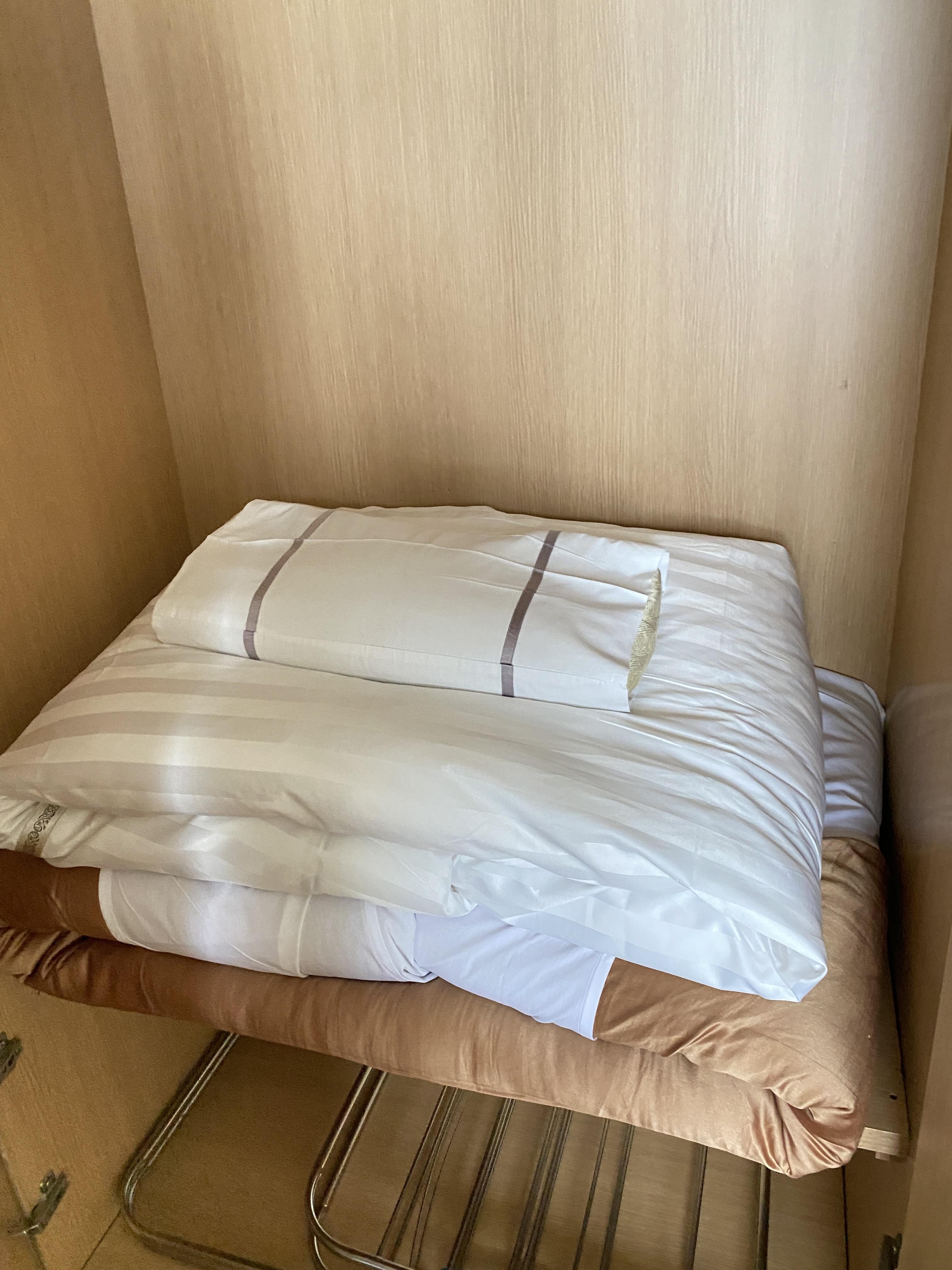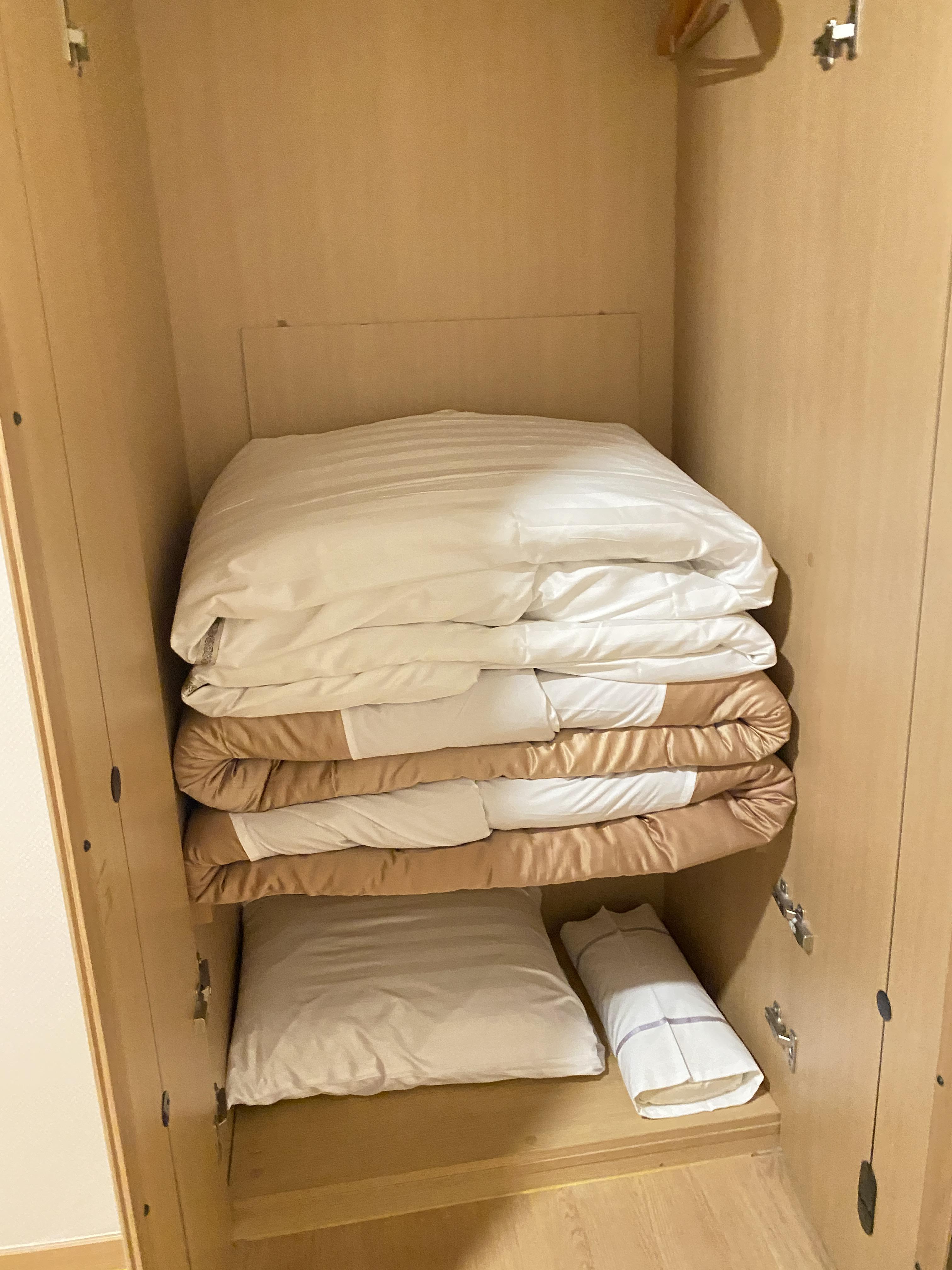 스위트룸의 한실, 온돌방입니다. 온돌방에는 따로 가구가 있진 않고 협탁이 하나 있고 붙박이장 안에 양실과 같이 침구 한 세트가 준비되어 있습니다. 저희 가족은 총 6명이가서 혹시나 하는 마음에 얇은 이불도 챙겨갔었는데 이불을 같이 쓰지 않는 다면 추가 비용을 지불하거나 얇은 이불을 챙겨가는 것을 추천드립니다. 덕분에 하루지만 이불 걱정 없이 편하게 지낼 수 있었습니다.