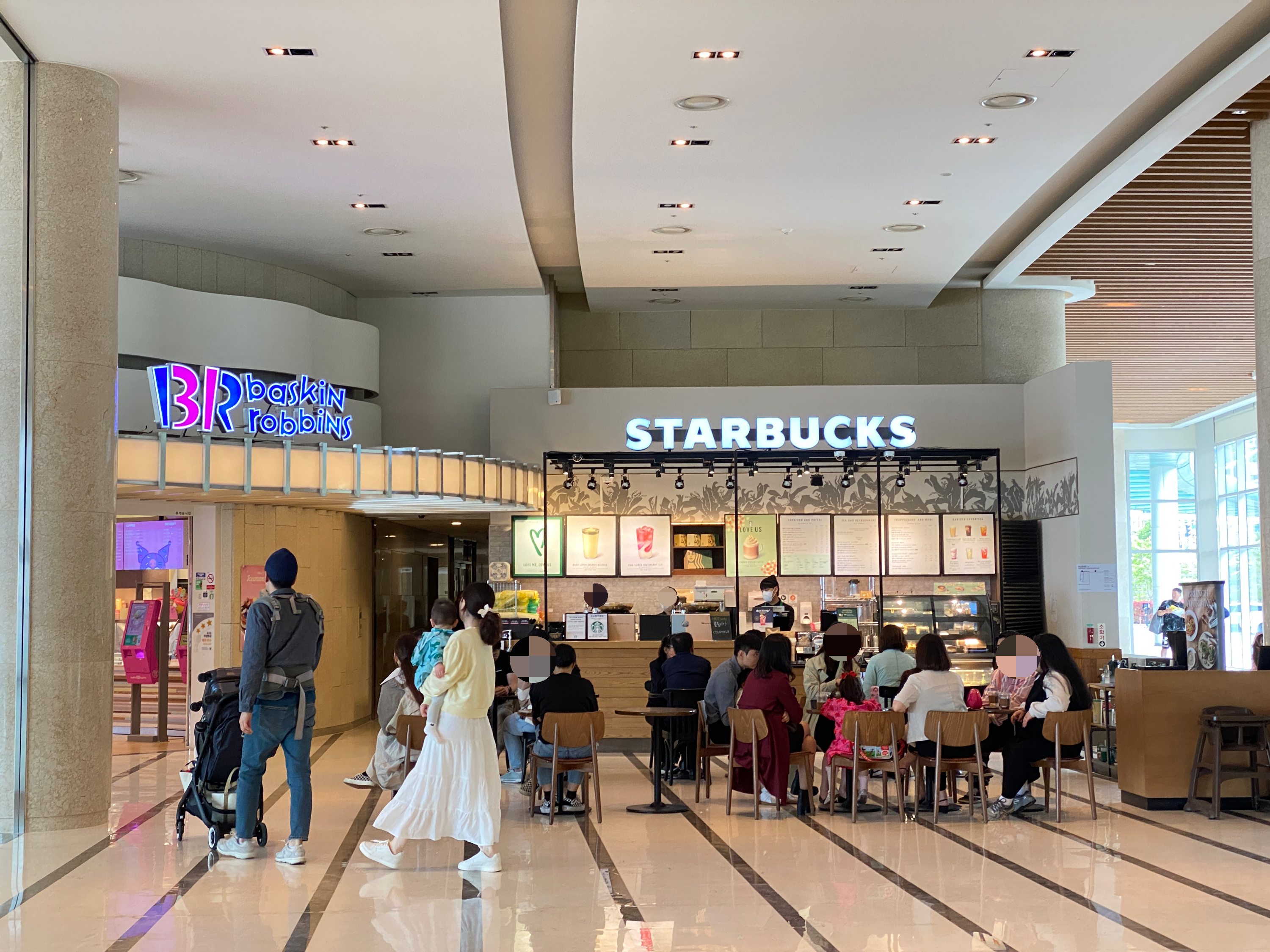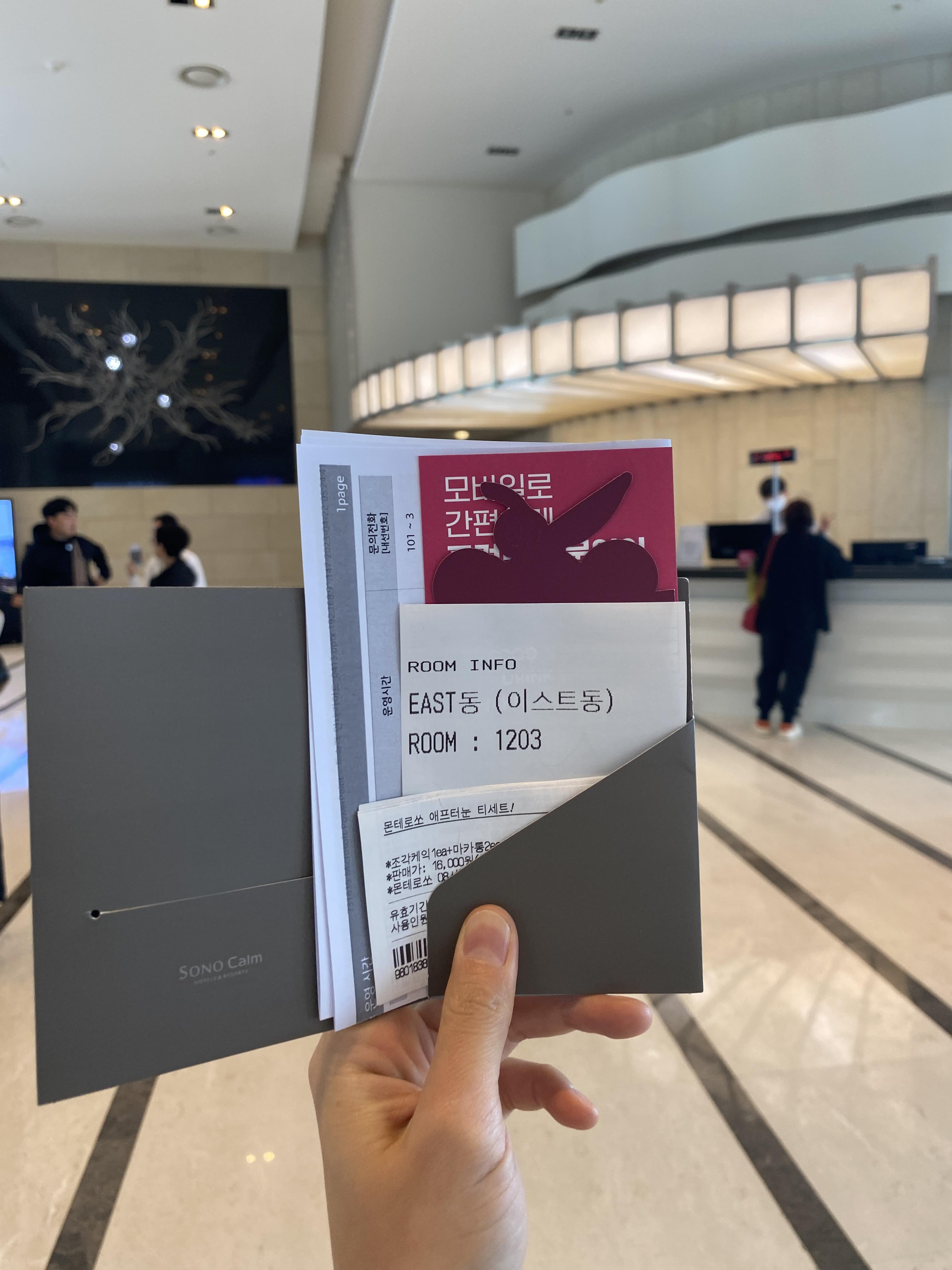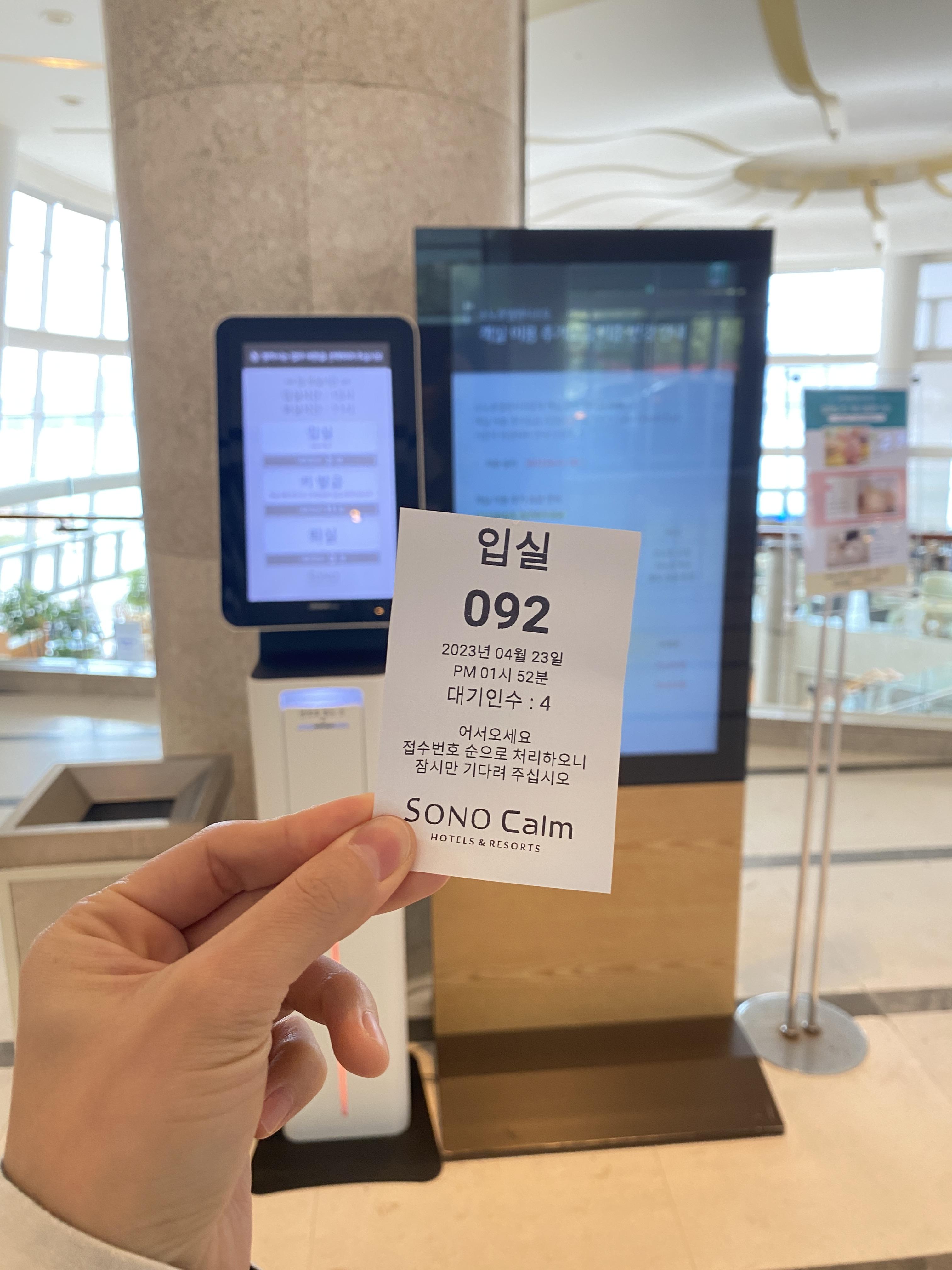 선착순 배정을 기다리는 투숙객이 스타벅스나 한 층 아래 홀에서 기다리고 있는 모습입니다. 저희는 일요일 낮에 체크인을 했는데 월요일까지 연차를 써서 오신 분들이 많아 보입니다. 저희는 1시 52분에 번호표를 뽑고 방배정을 받았습니다. 이것저것 쿠폰을 많이 챙겨주시는데 잘 보고 사용하면 좋을 거 같습니다.